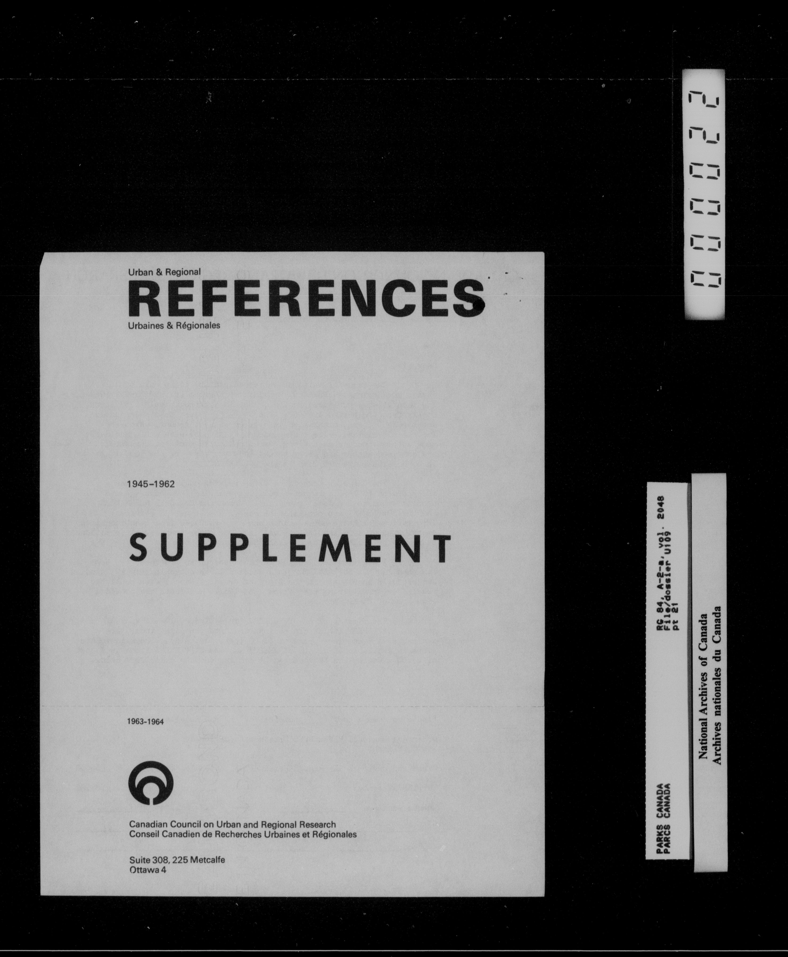 Department of Canadian Heritage, Canadian Parks Service : Park/subject classification system - 16010