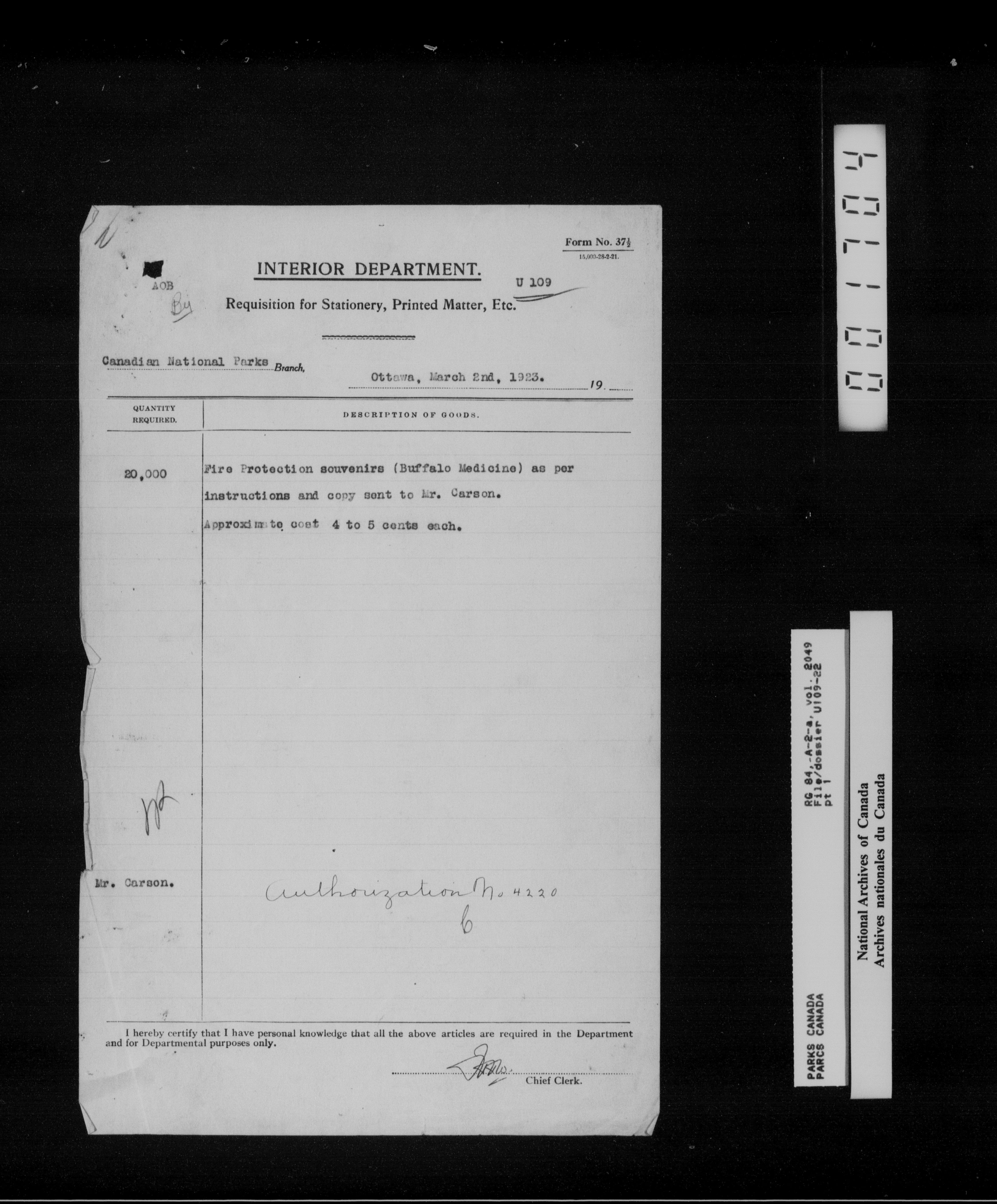 Department of Canadian Heritage, Canadian Parks Service : Park/subject classification system - 16011