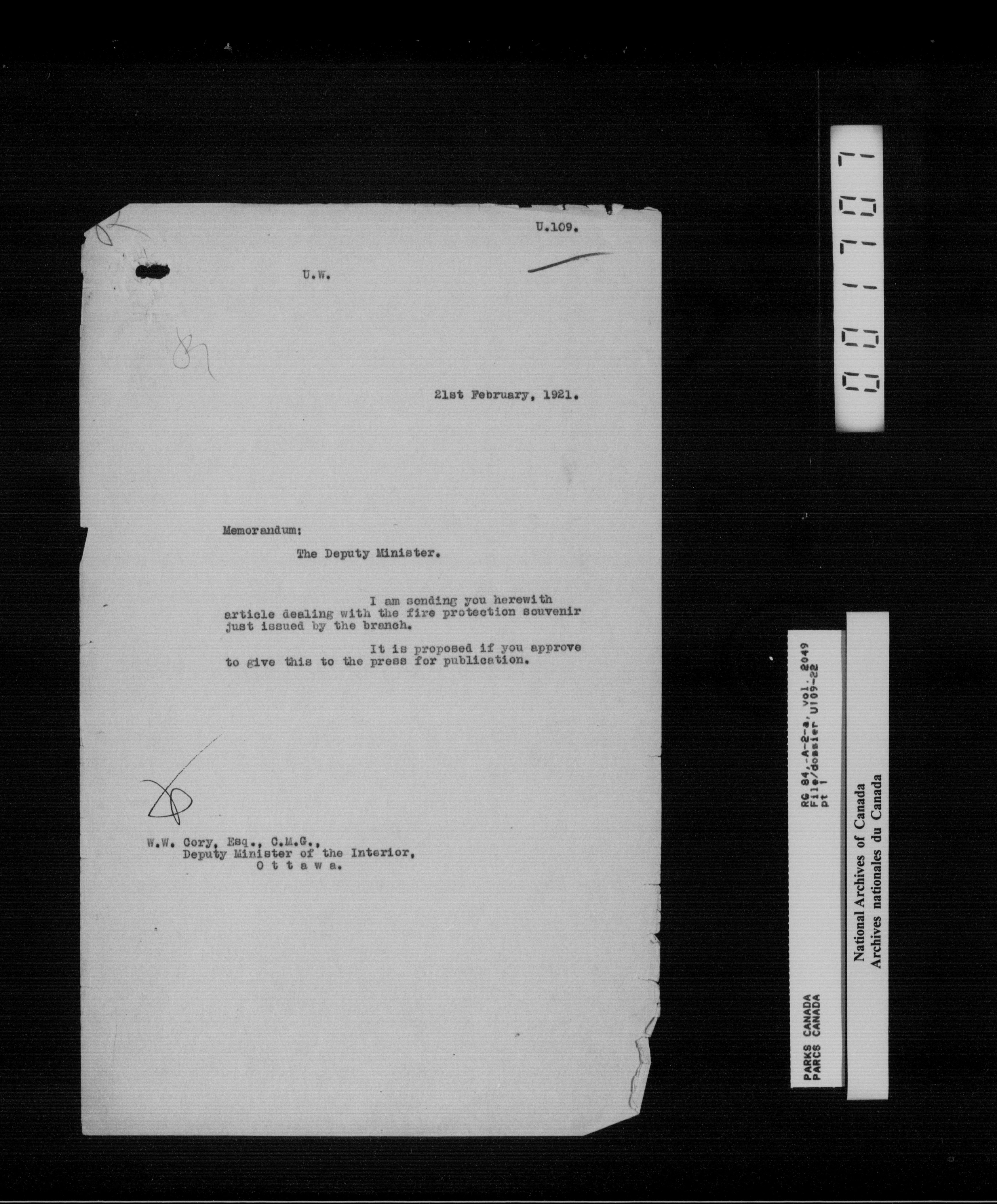 Department of Canadian Heritage, Canadian Parks Service : Park/subject classification system - 16011
