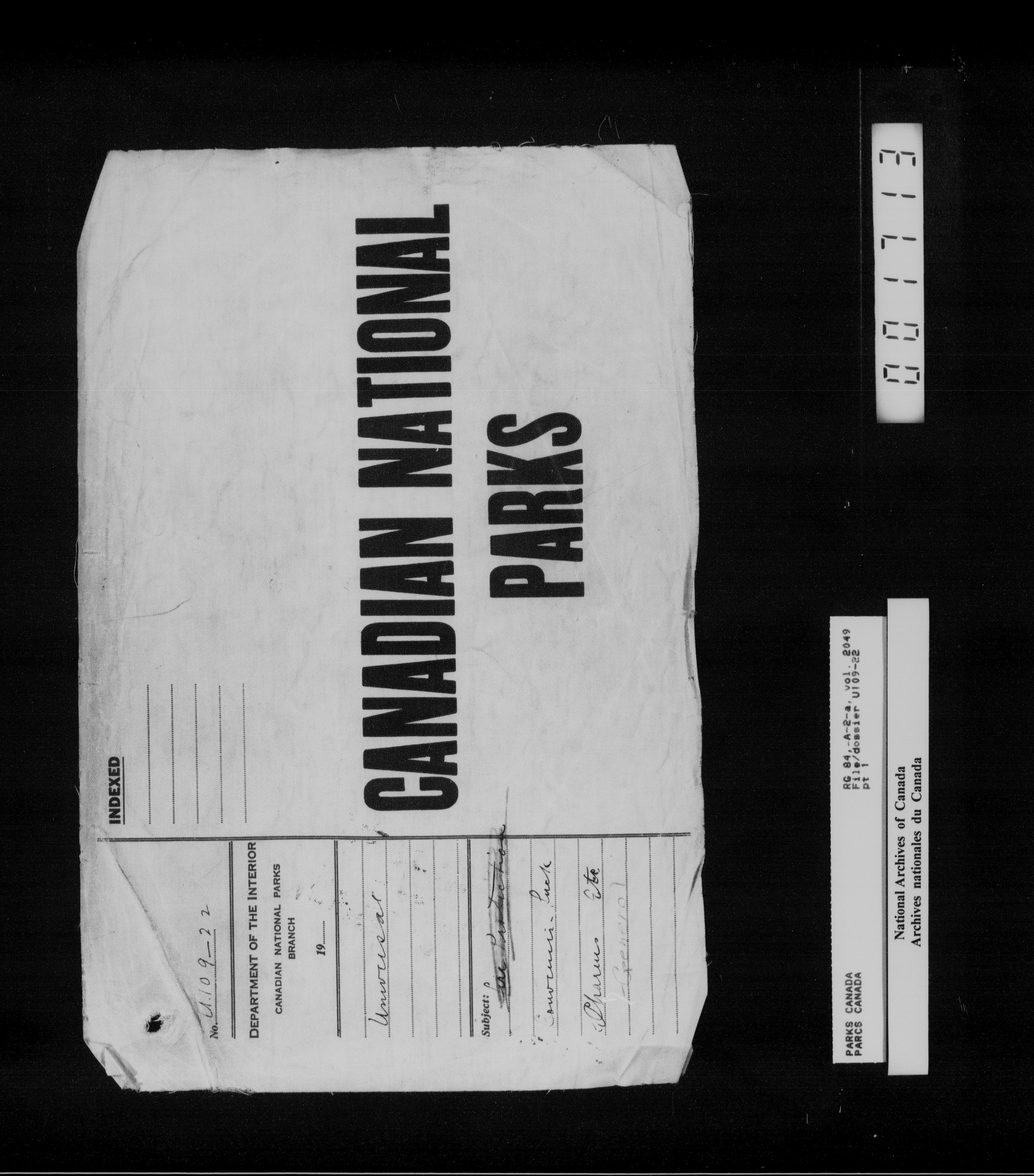 Department of Canadian Heritage, Canadian Parks Service : Park/subject classification system - 16011