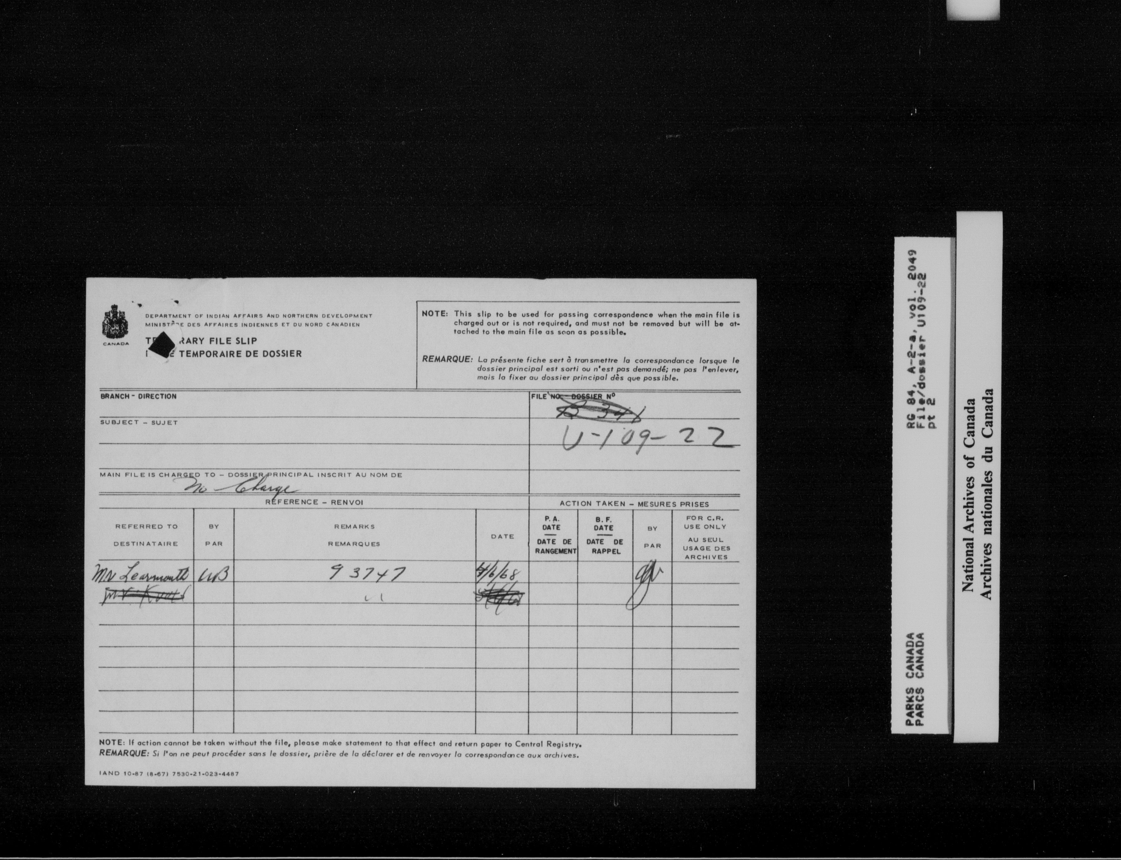 Department of Canadian Heritage, Canadian Parks Service : Park/subject classification system - 16011