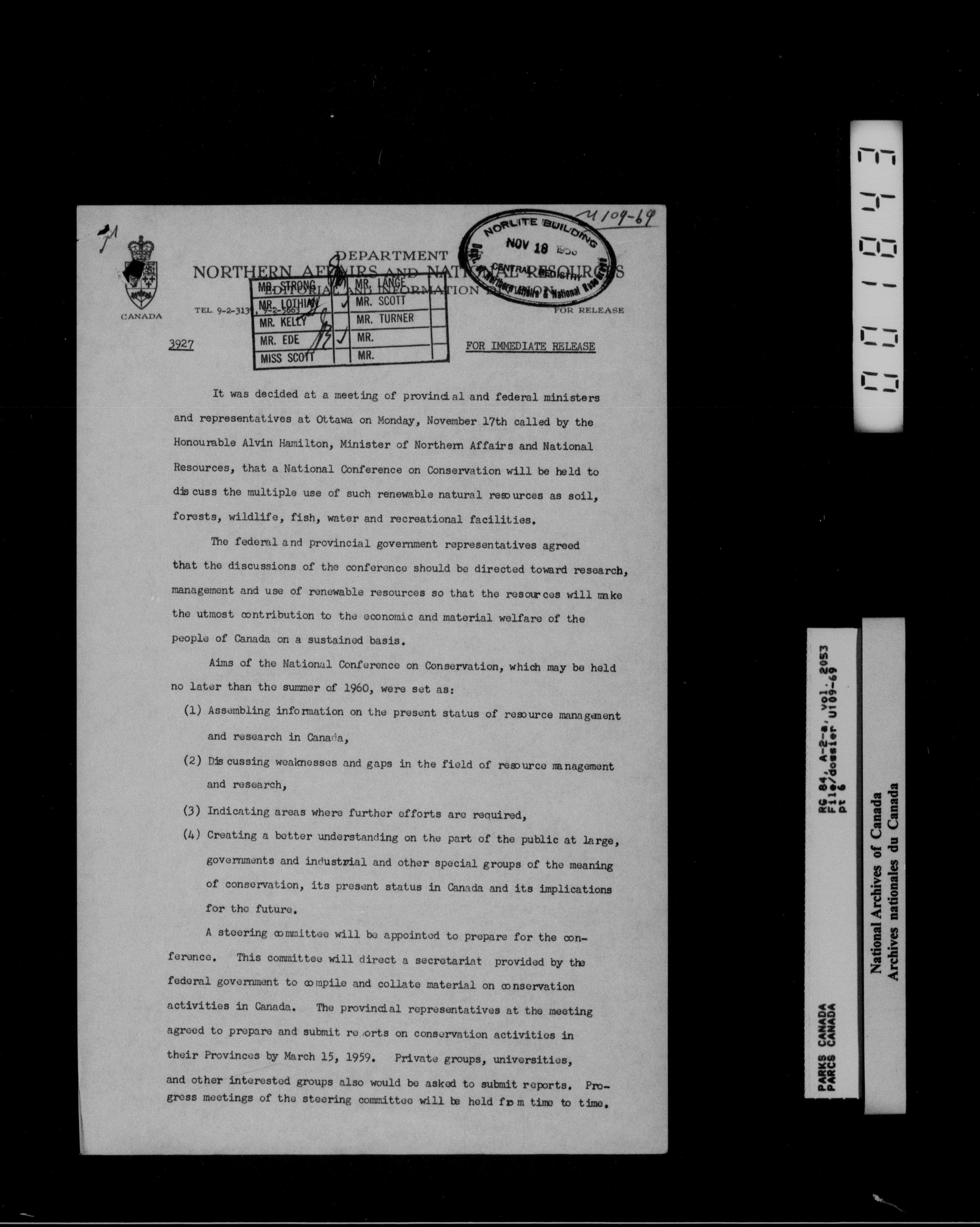 Department of Canadian Heritage, Canadian Parks Service : Park/subject classification system : T-16014
