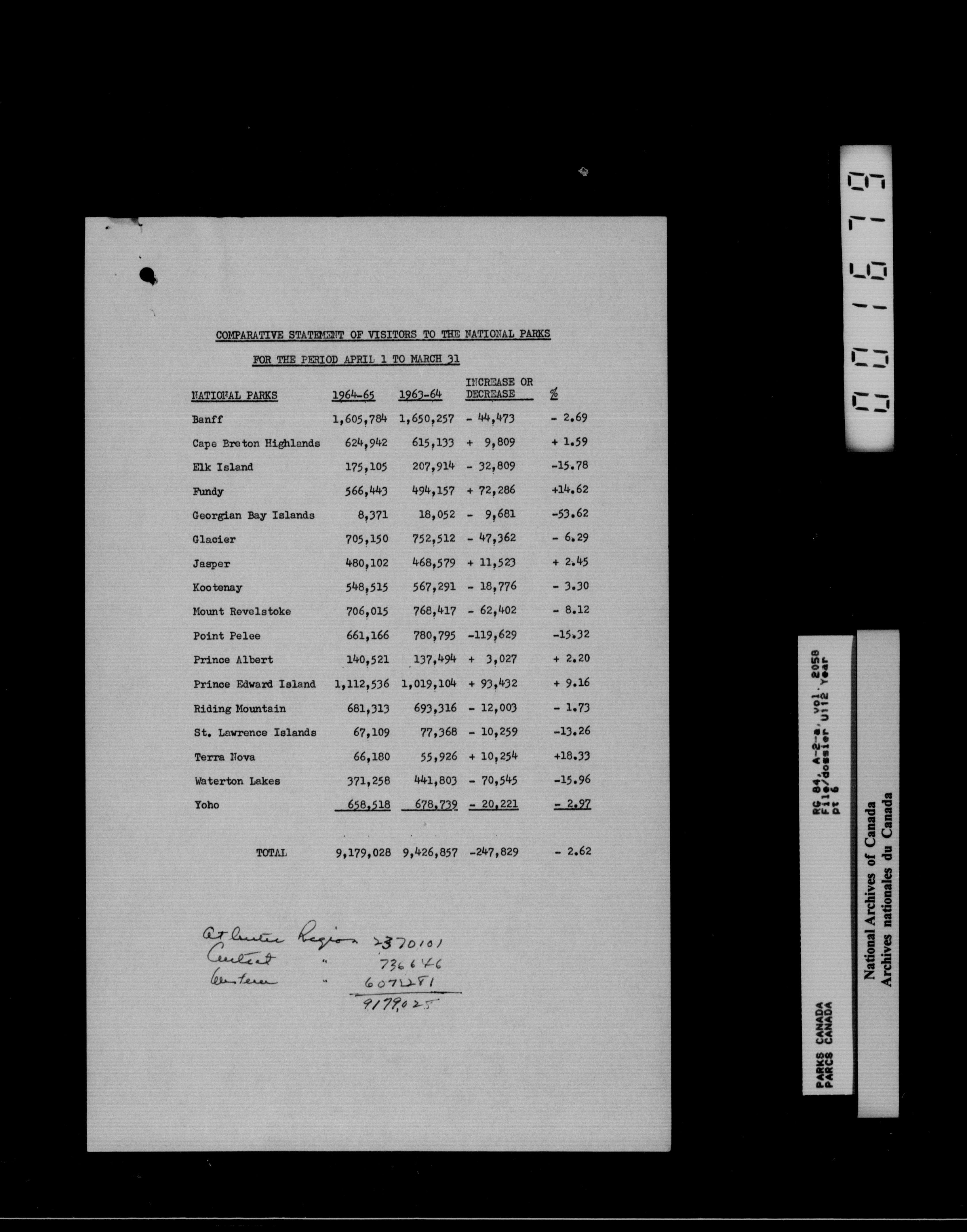 Department of Canadian Heritage, Canadian Parks Service : Park/subject classification system - 16019