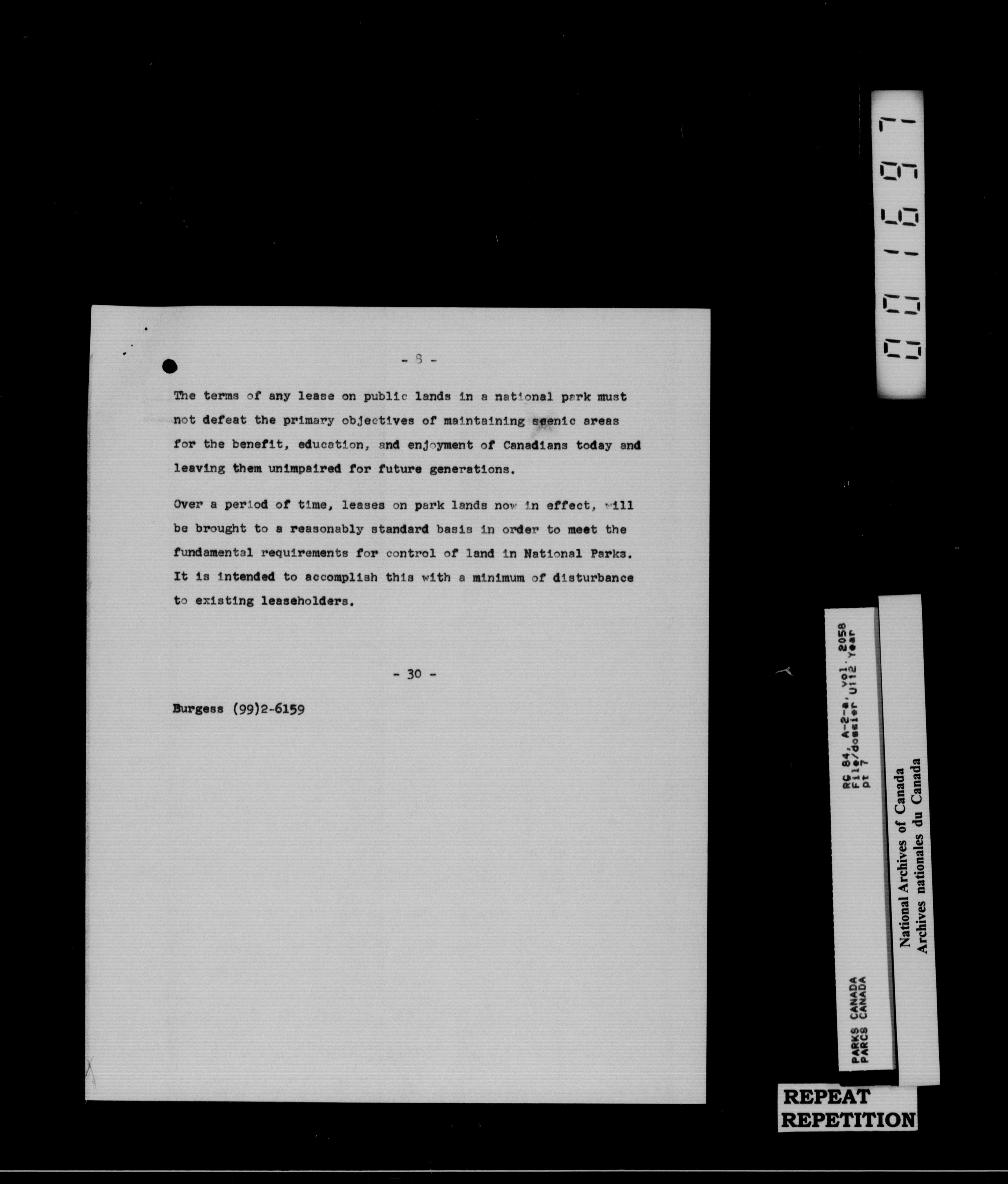 Department of Canadian Heritage, Canadian Parks Service : Park/subject classification system - 16019