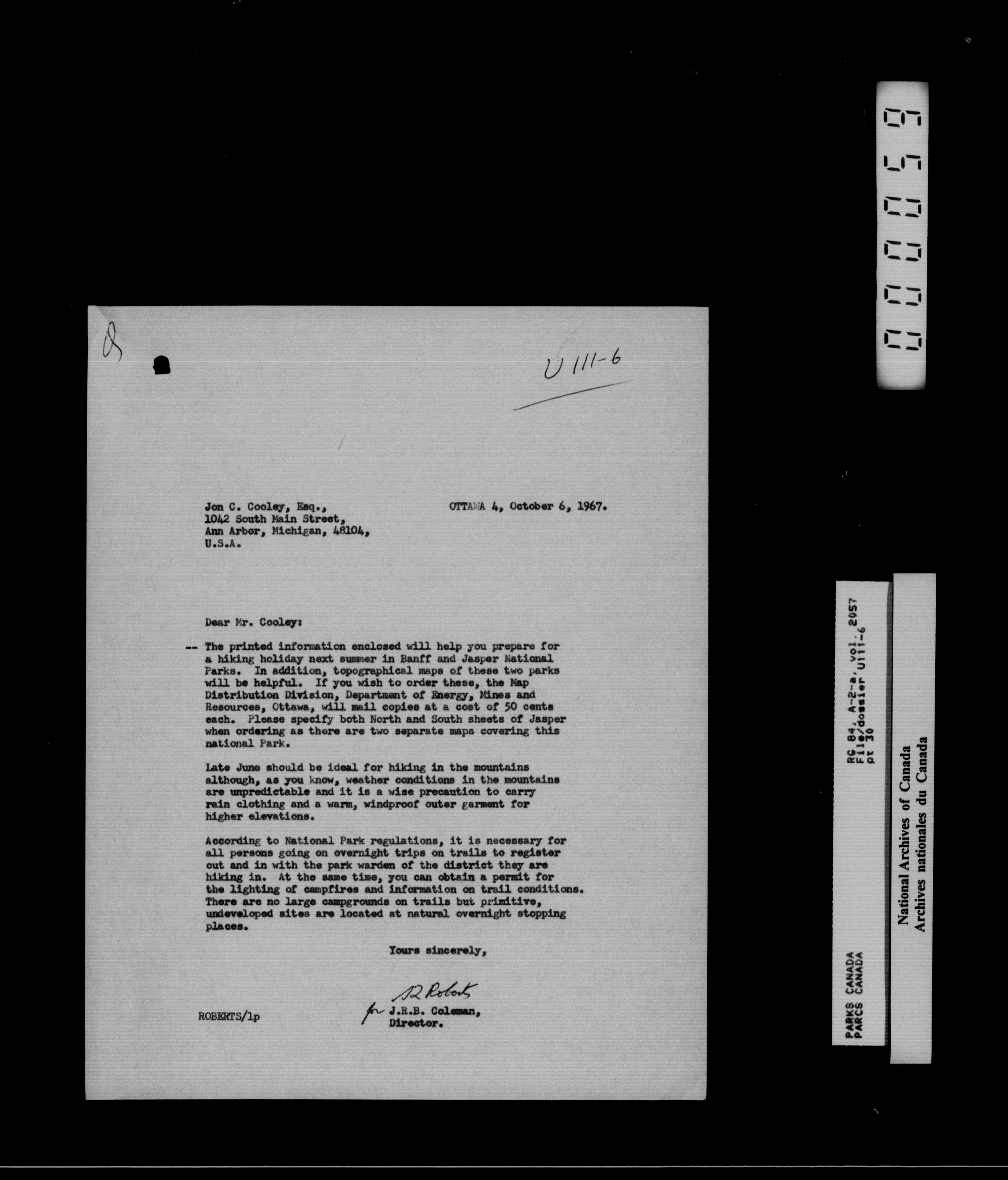 Department of Canadian Heritage, Canadian Parks Service : Park/subject classification system - 16019