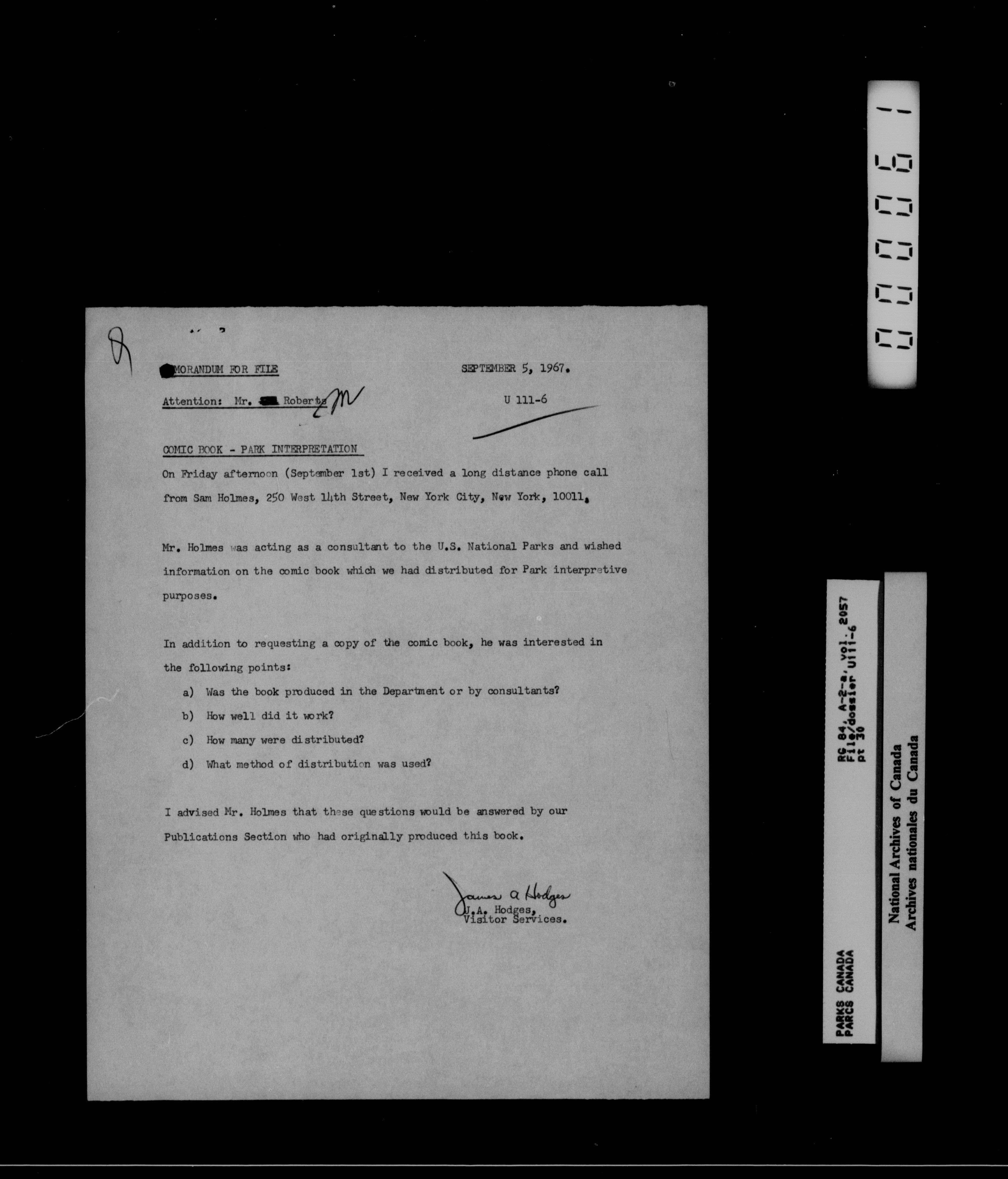 Department of Canadian Heritage, Canadian Parks Service : Park/subject classification system - 16019