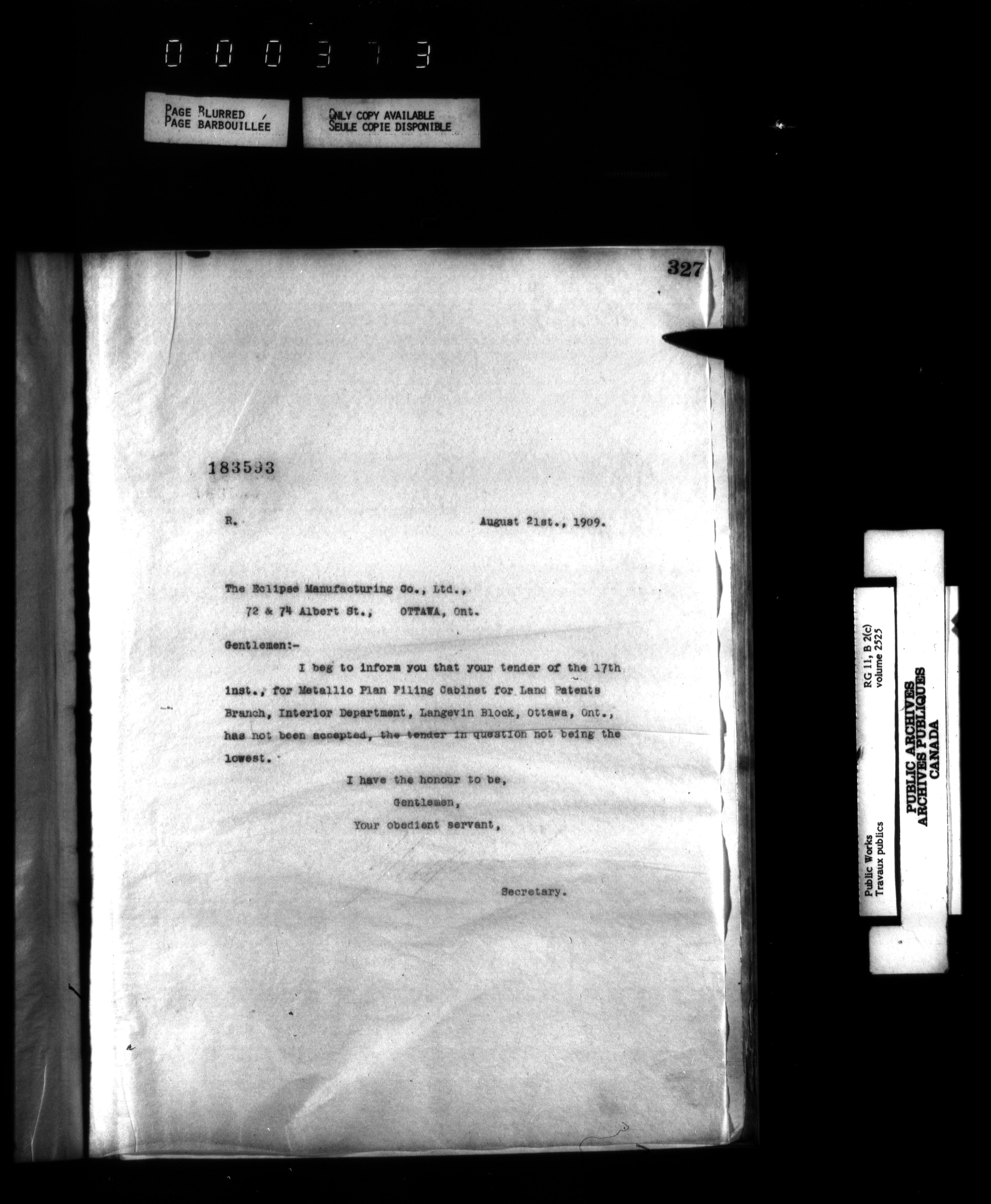 Department of Public Works : Outgoing Numbered Correspondence, 1879-1912 - 1602