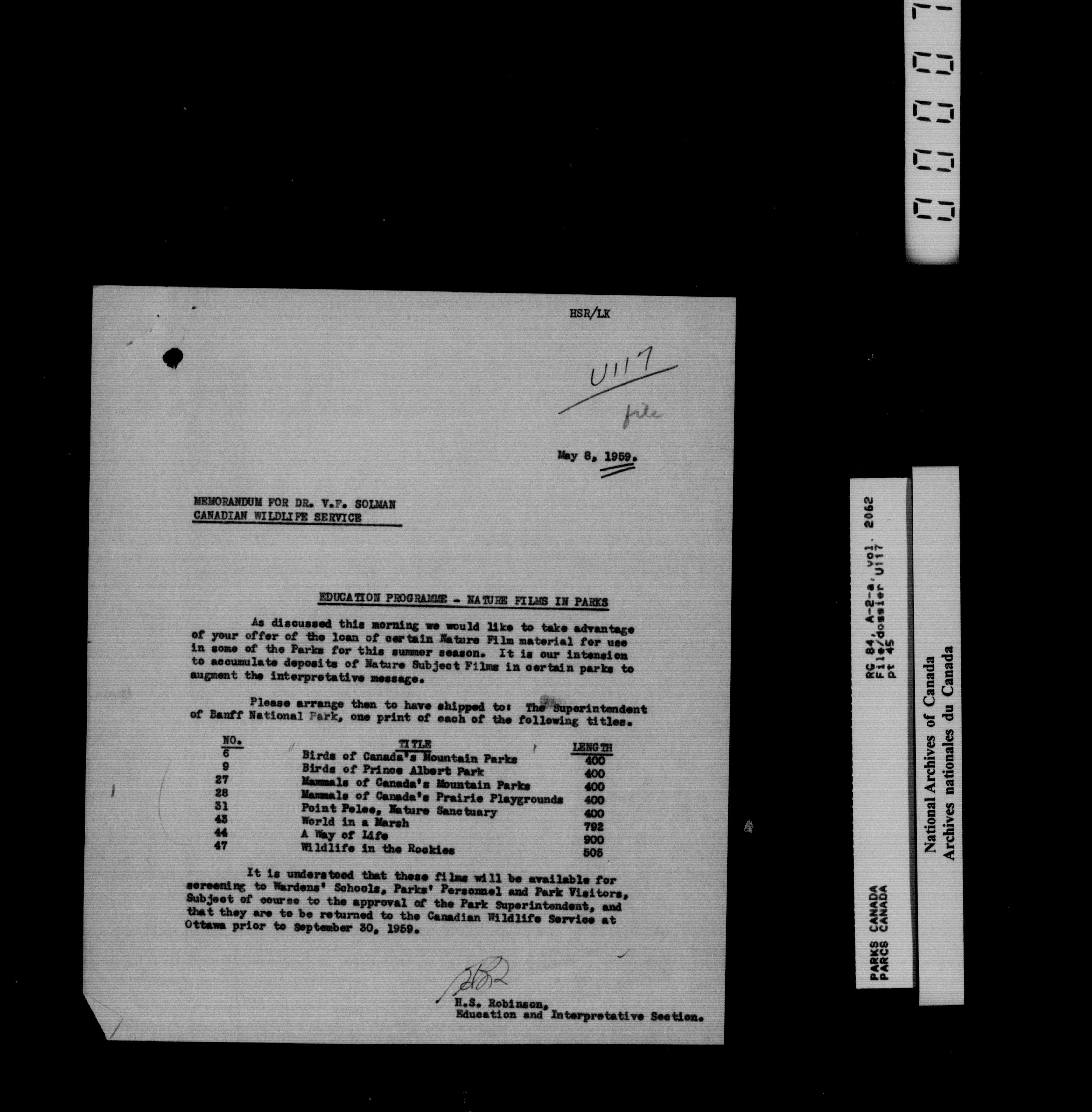 Department of Canadian Heritage, Canadian Parks Service : Park/subject classification system - 16023