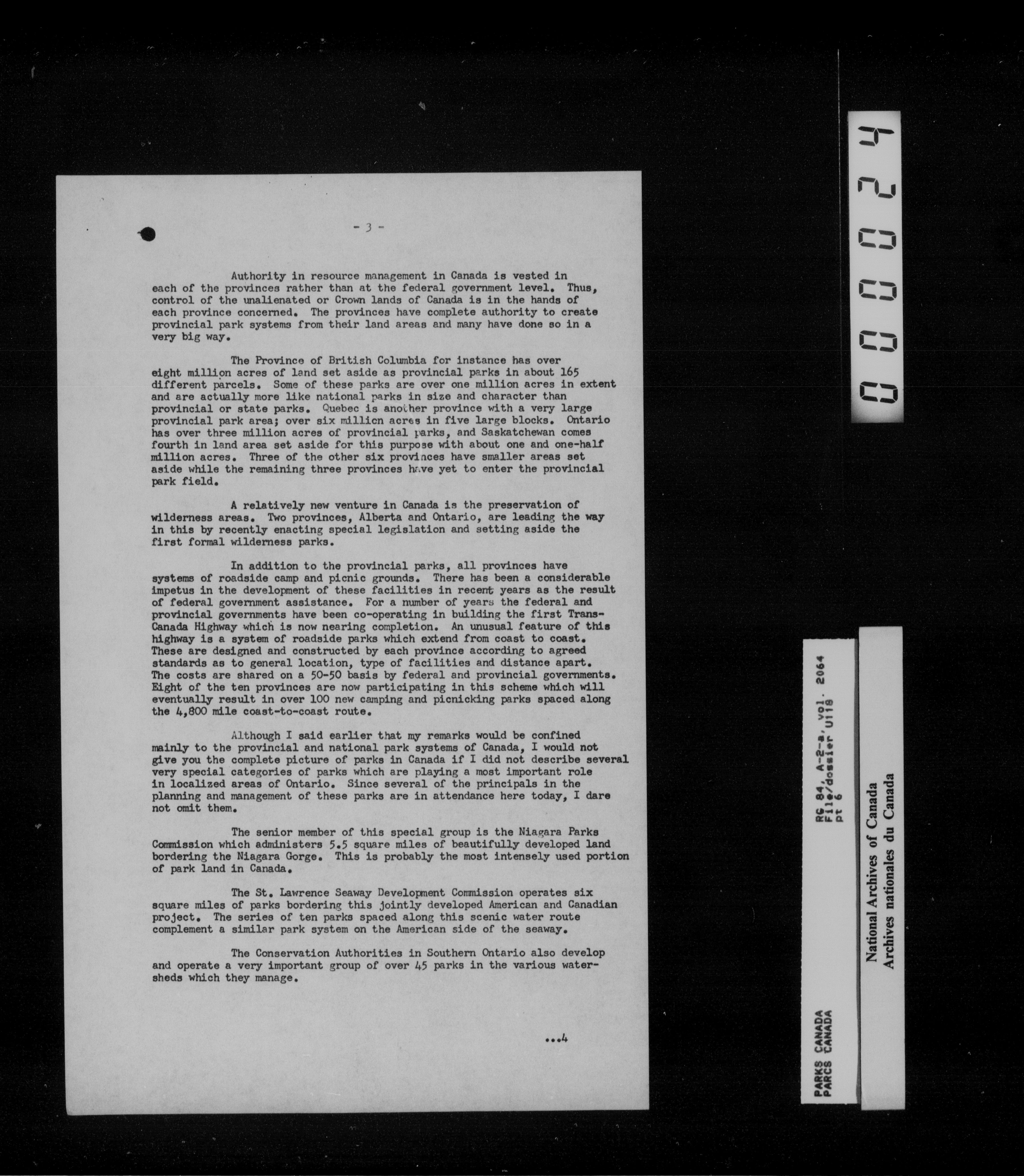 Department of Canadian Heritage, Canadian Parks Service : Park/subject classification system - 16025