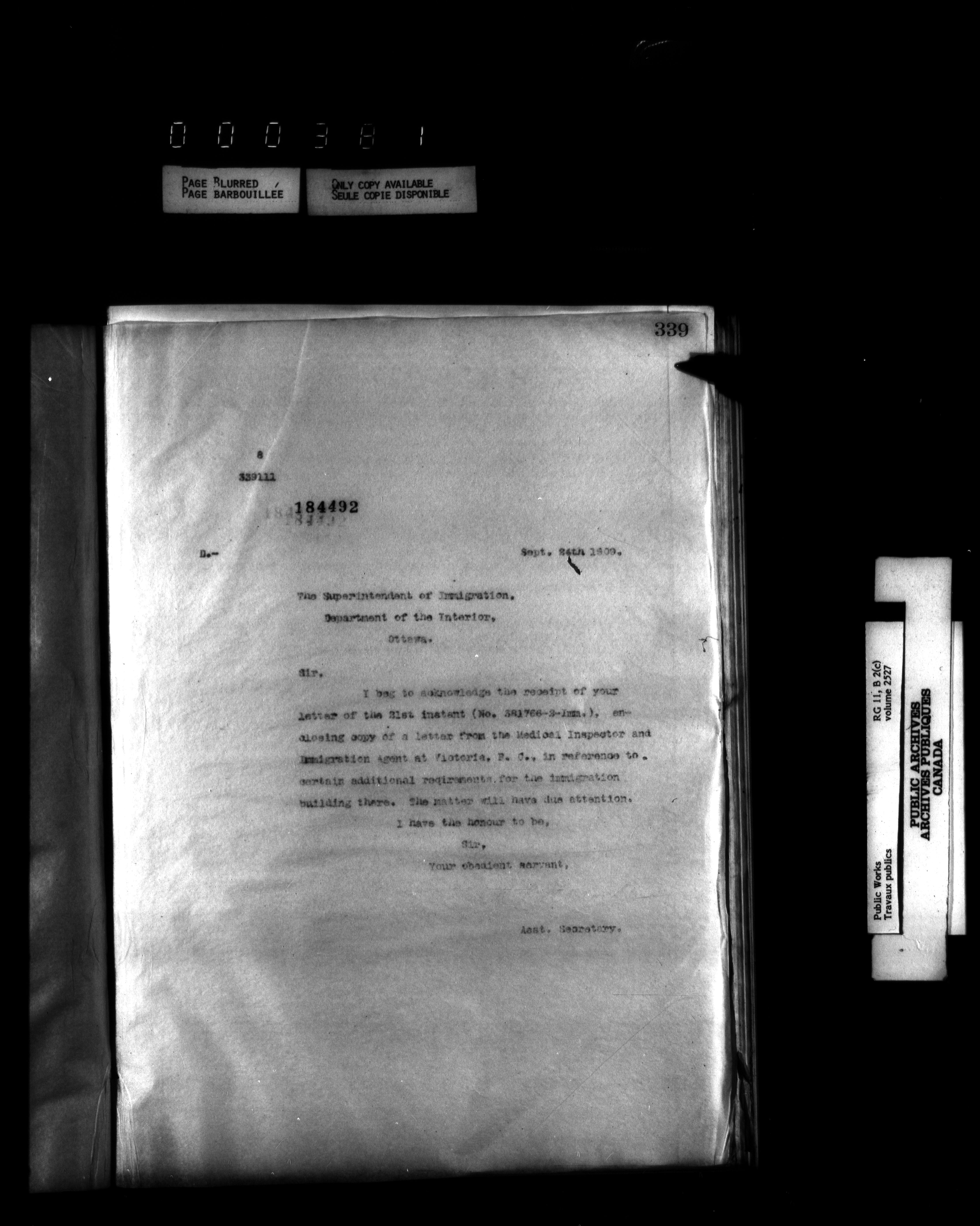 Department of Public Works : Outgoing Numbered Correspondence, 1879-1912 - 1603