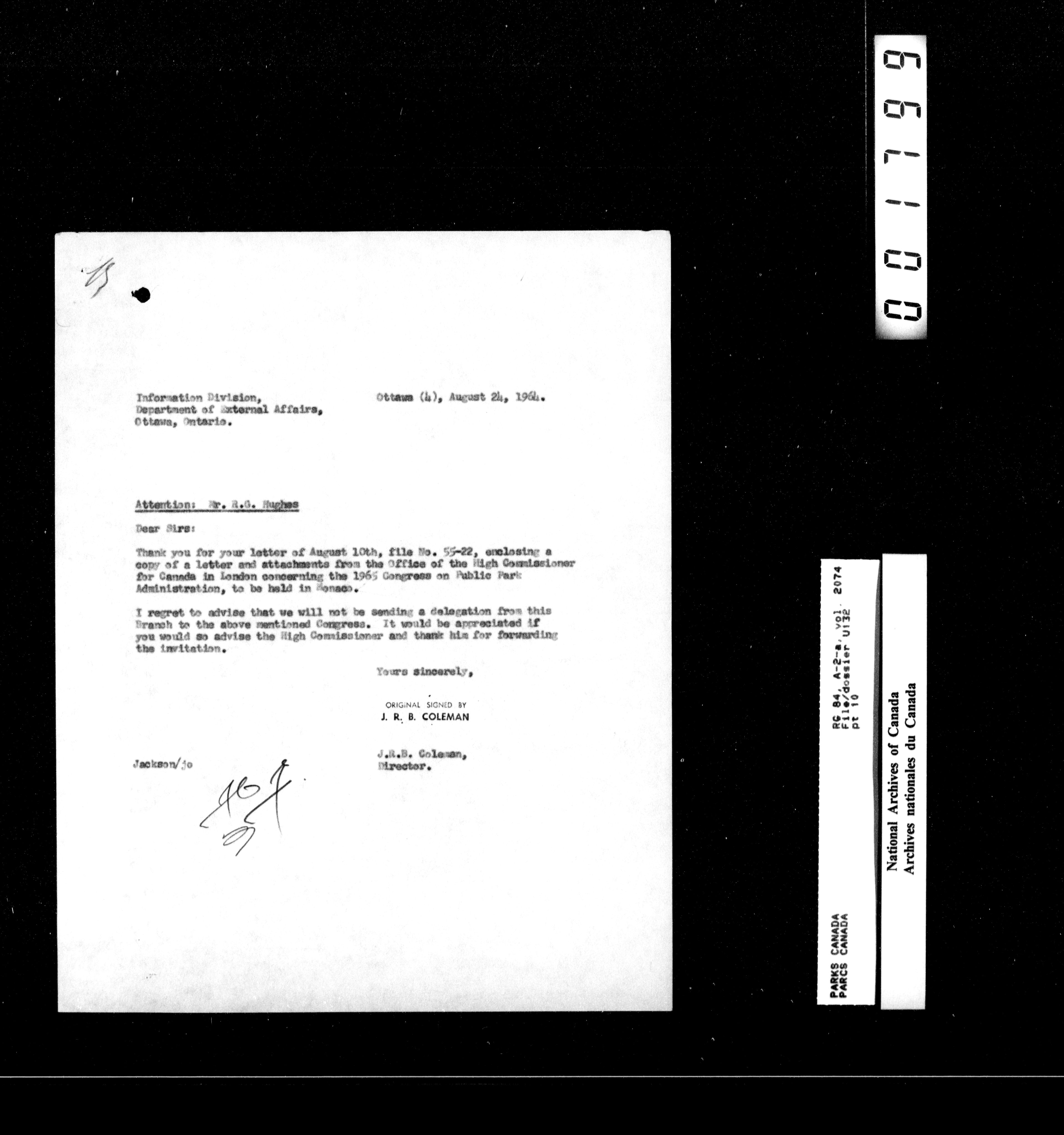 Department of Canadian Heritage, Canadian Parks Service : Park/subject classification system - 16034