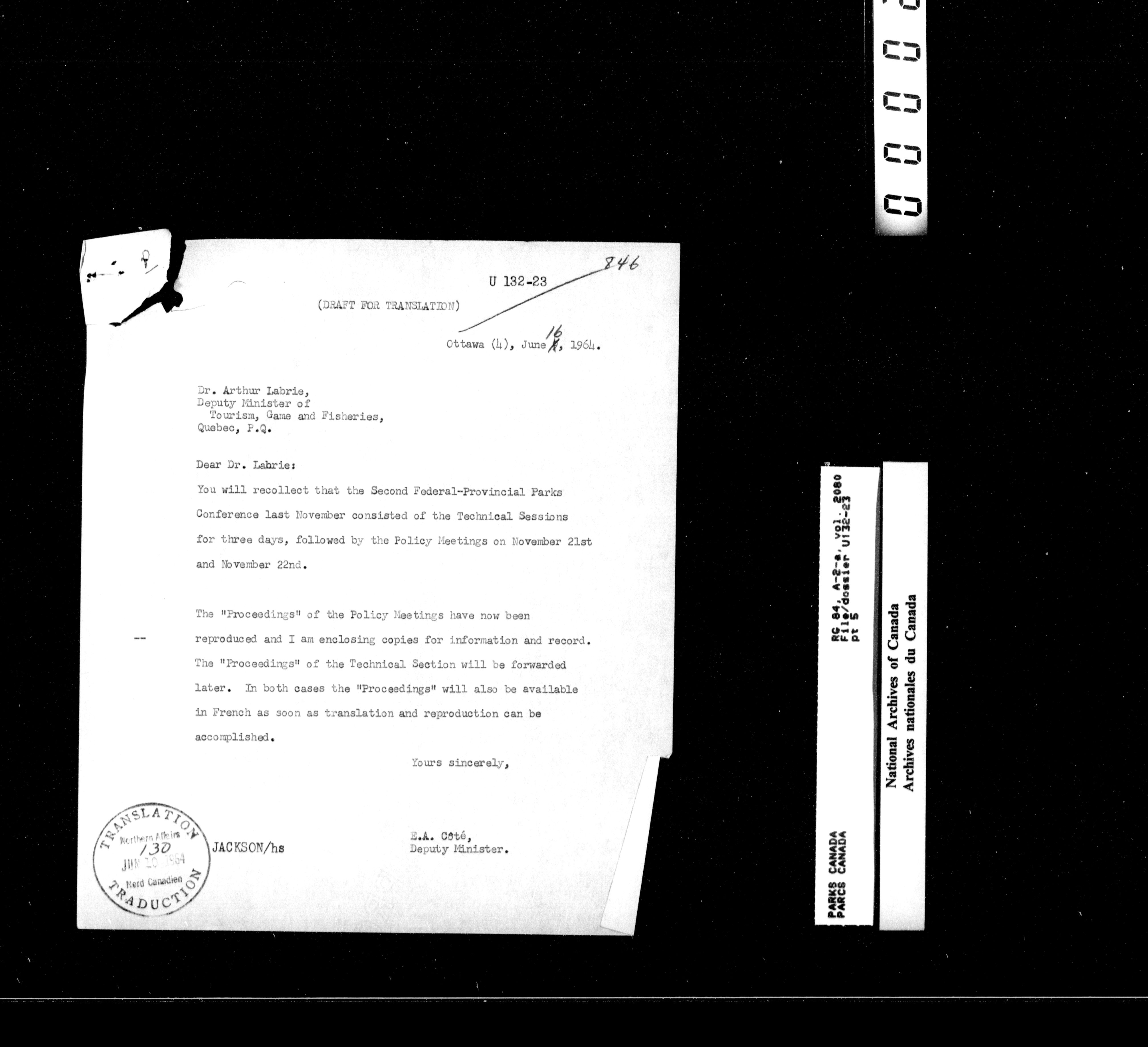 Department of Canadian Heritage, Canadian Parks Service : Park/subject classification system - 16040