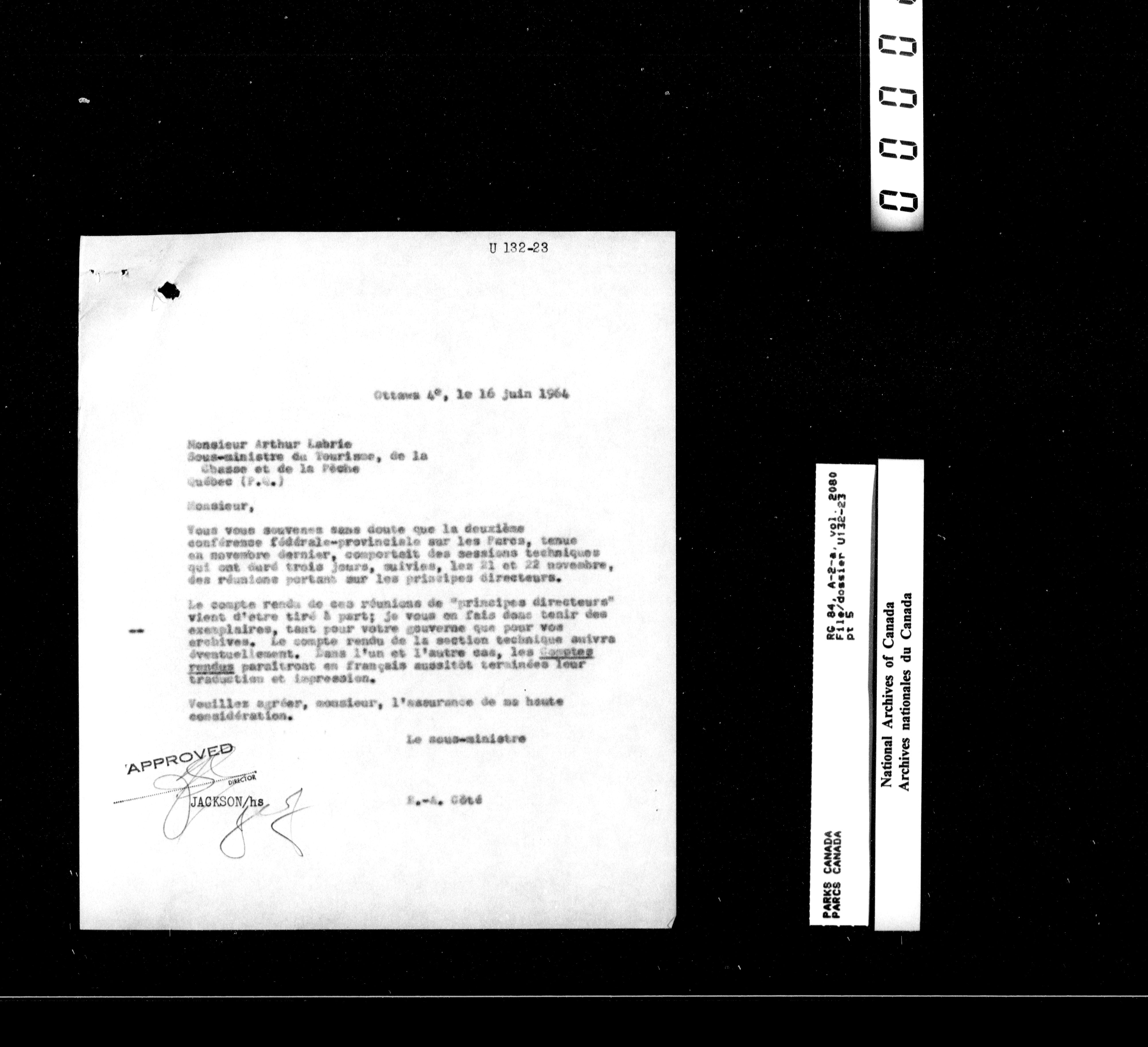 Department of Canadian Heritage, Canadian Parks Service : Park/subject classification system - 16040