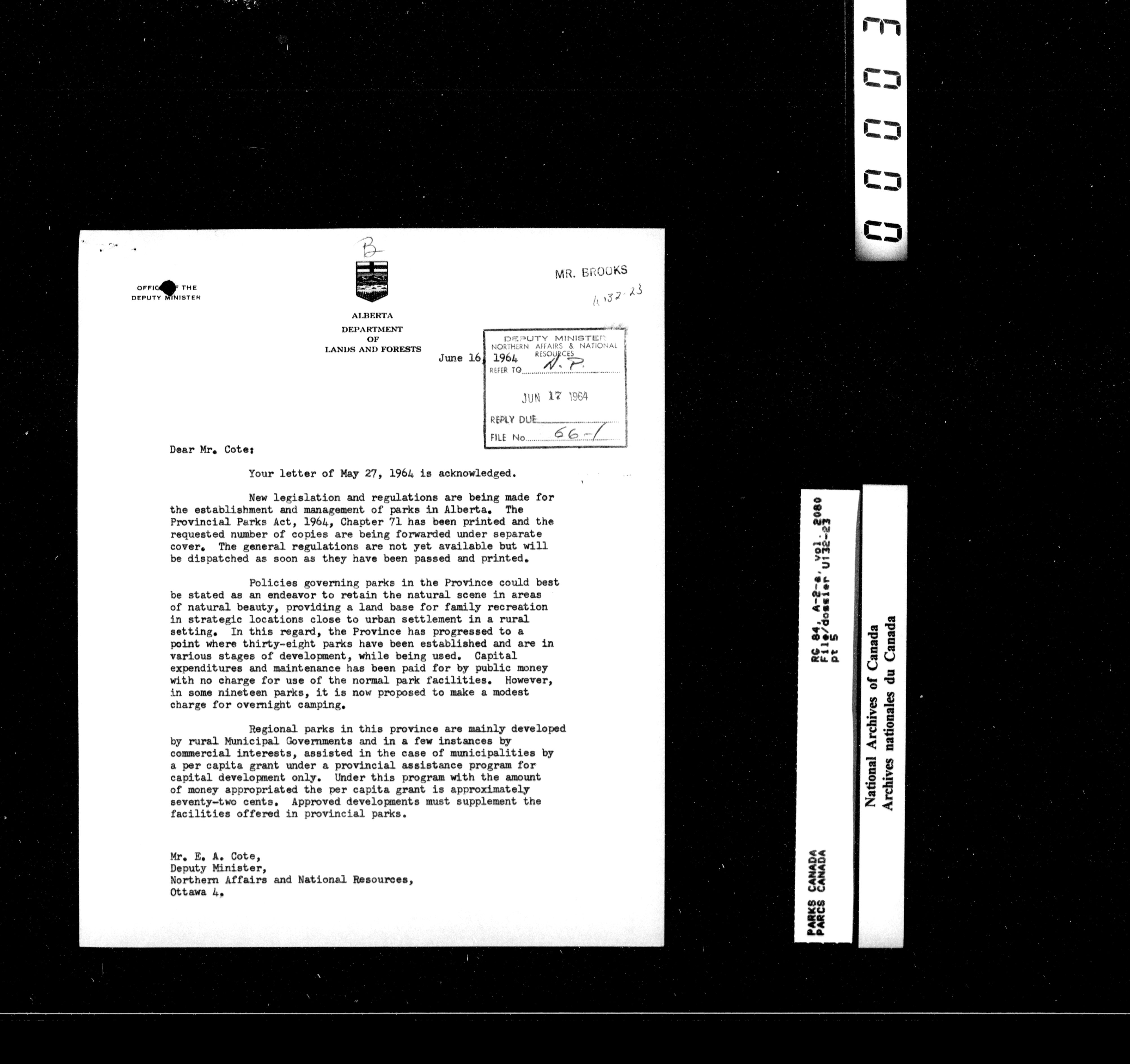 Department of Canadian Heritage, Canadian Parks Service : Park/subject classification system - 16040
