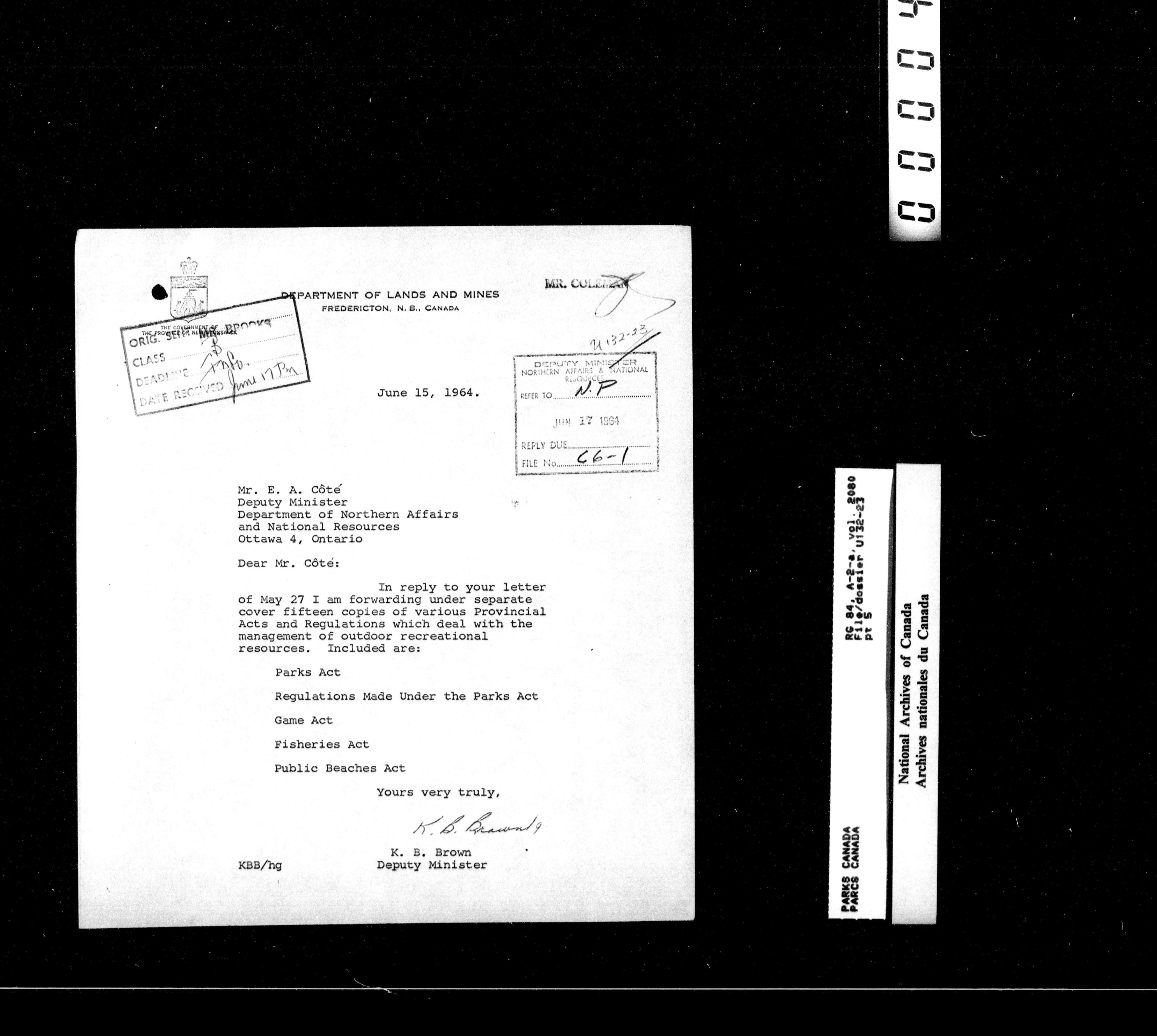 Department of Canadian Heritage, Canadian Parks Service : Park/subject classification system - 16040