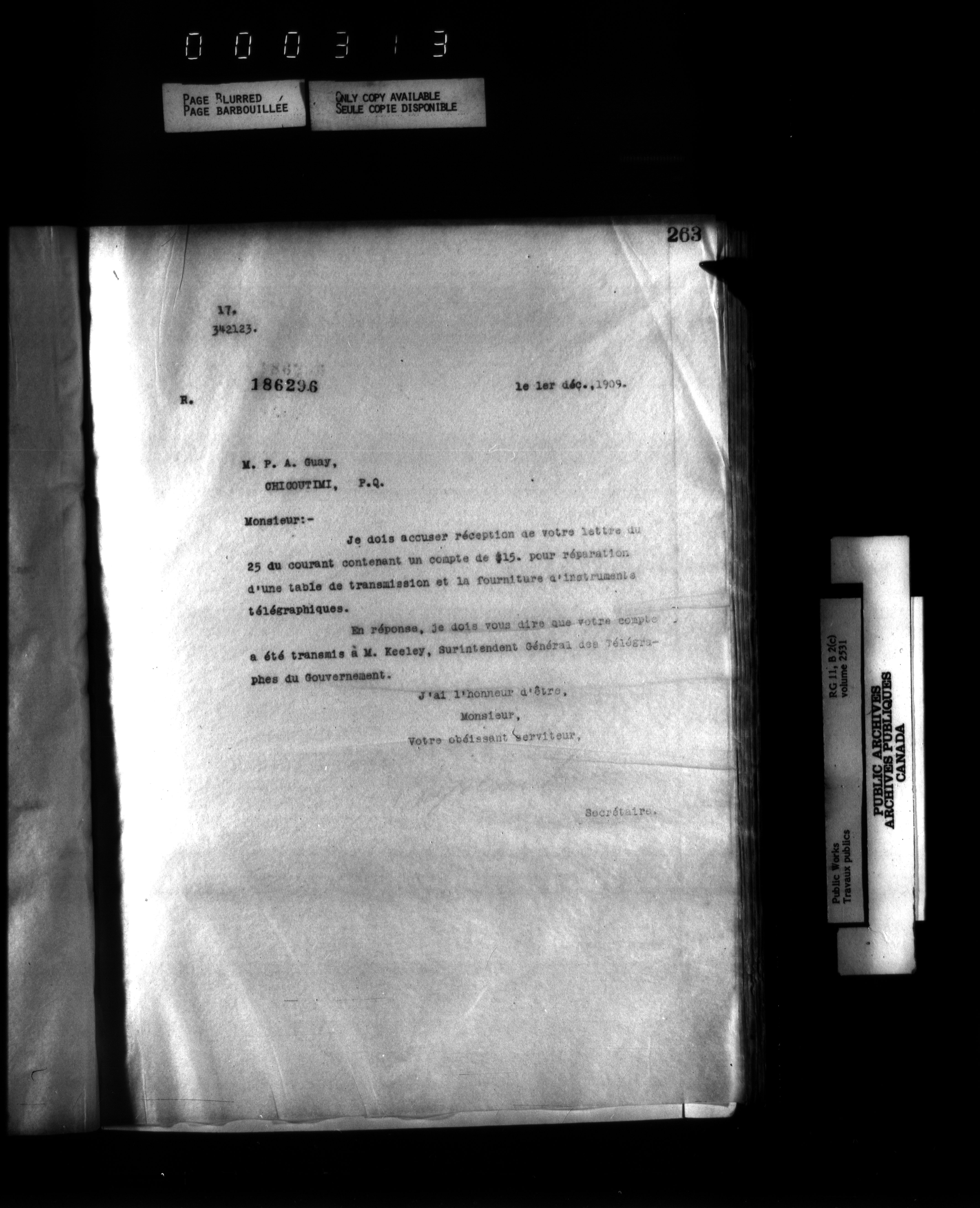 Department of Public Works : Outgoing Numbered Correspondence, 1879-1912 - 1605