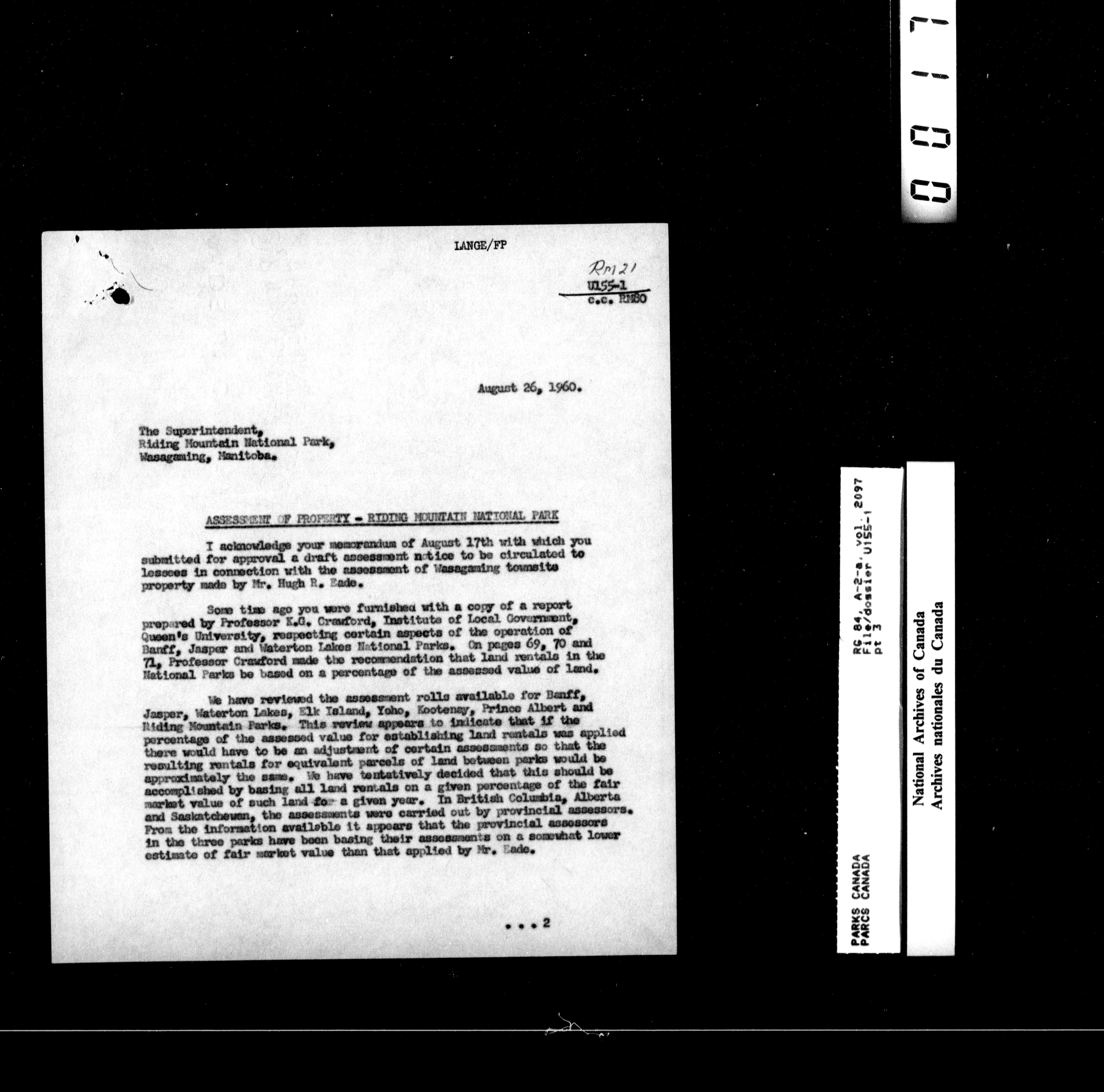 Department of Canadian Heritage, Canadian Parks Service : Park/subject classification system : T-16055