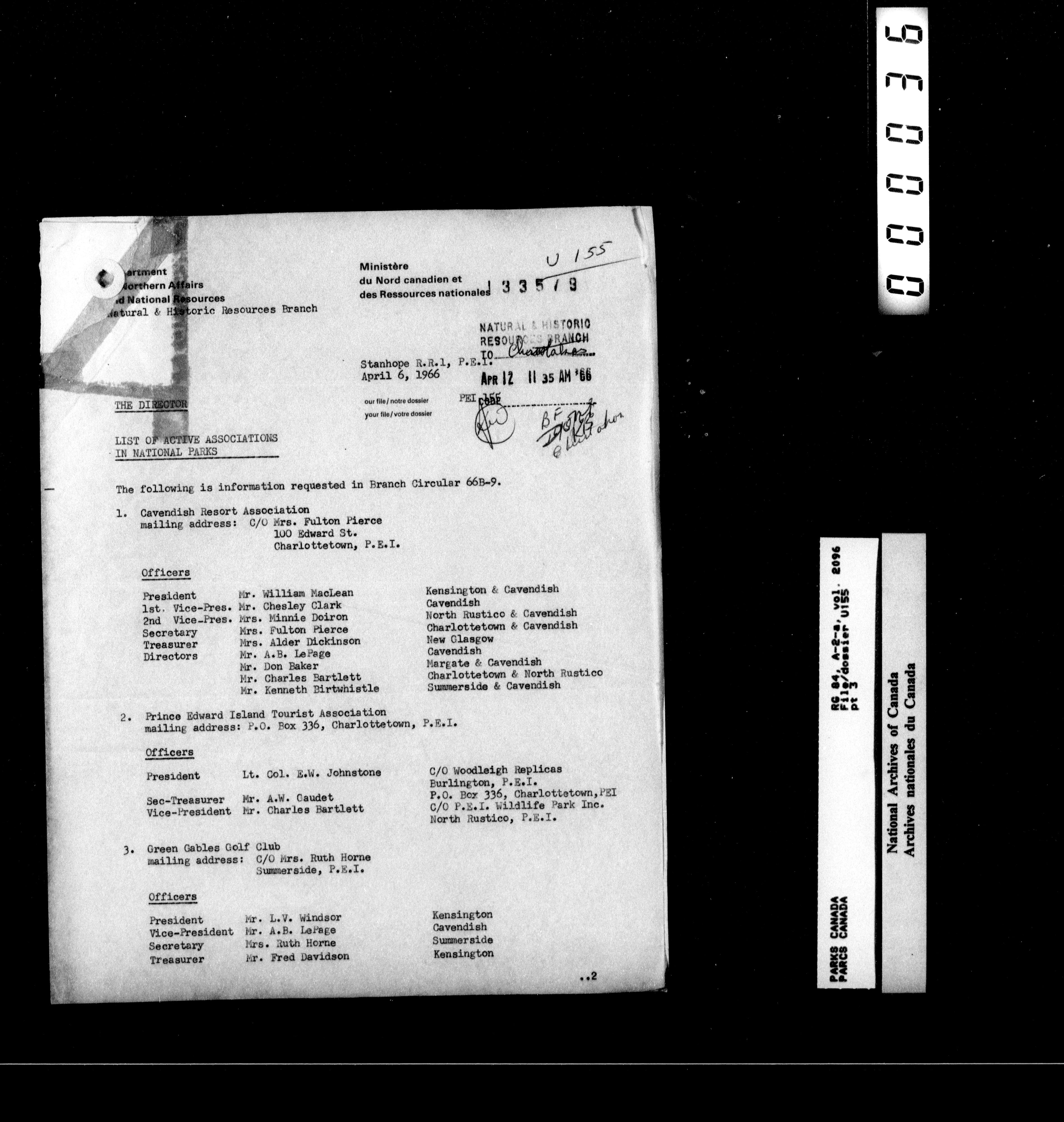 Department of Canadian Heritage, Canadian Parks Service : Park/subject classification system : T-16055