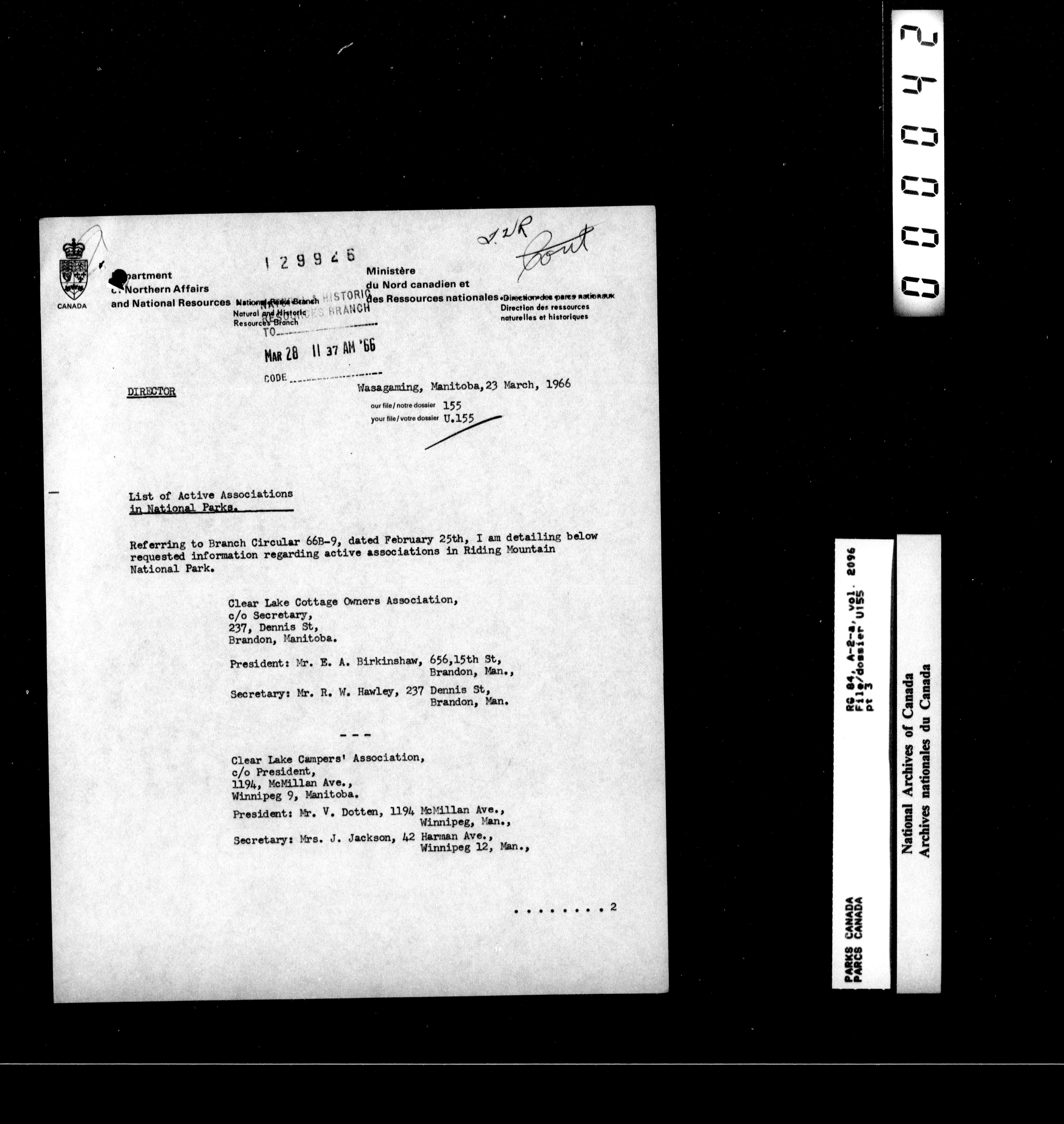 Department of Canadian Heritage, Canadian Parks Service : Park/subject classification system : T-16055