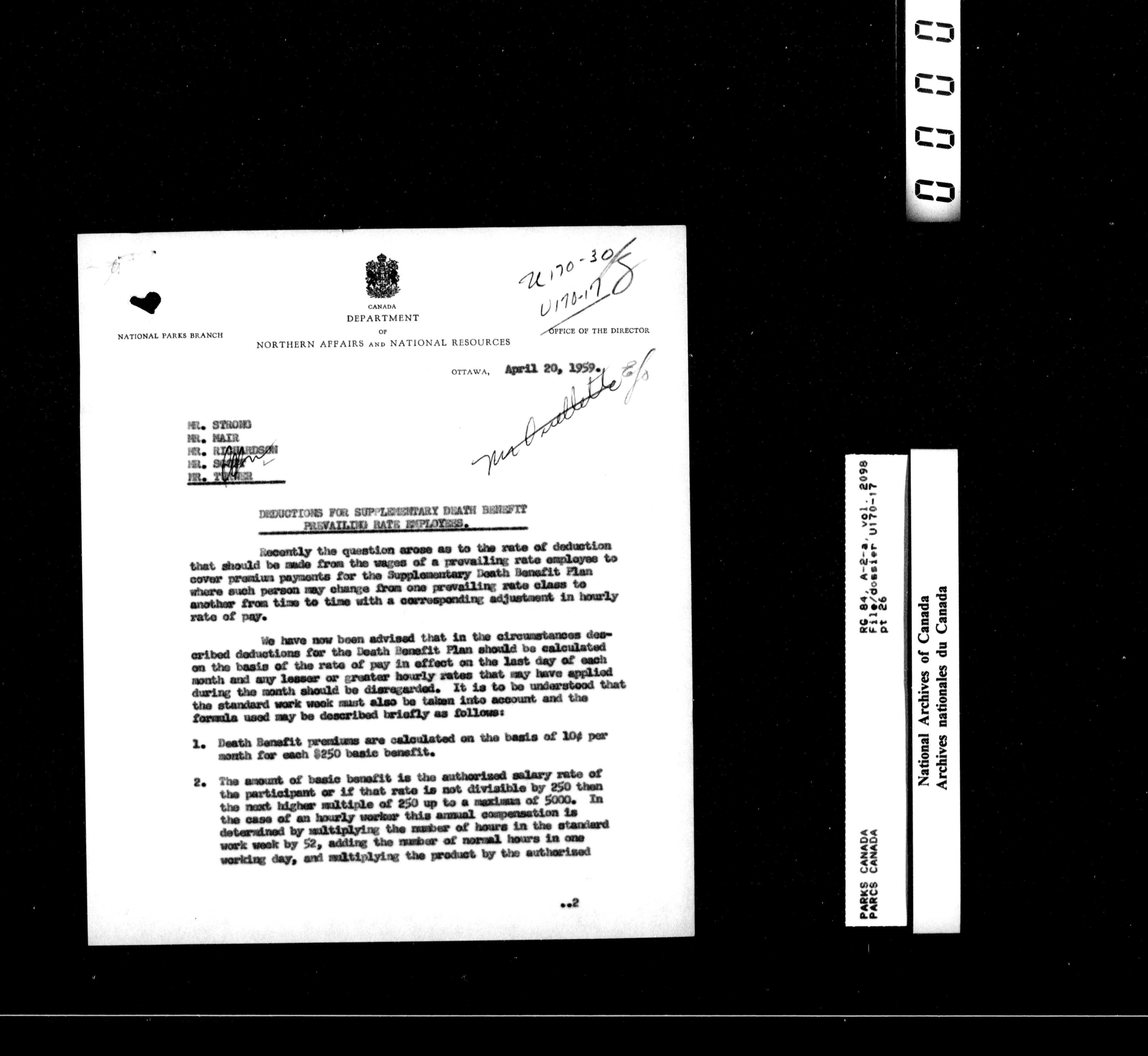 Department of Canadian Heritage, Canadian Parks Service : Park/subject classification system : T-16057