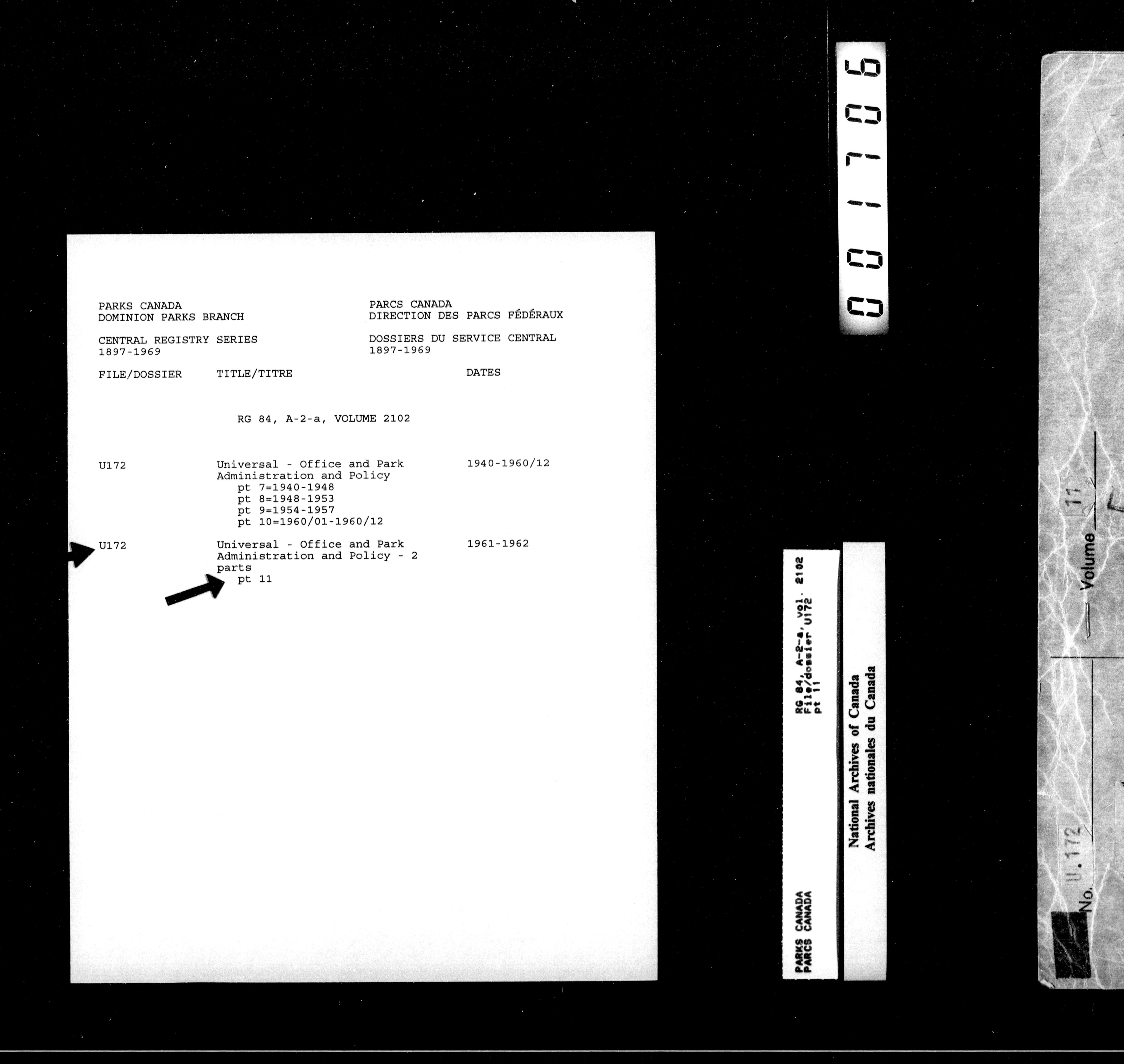 Department of Canadian Heritage, Canadian Parks Service : Park/subject classification system - 16060