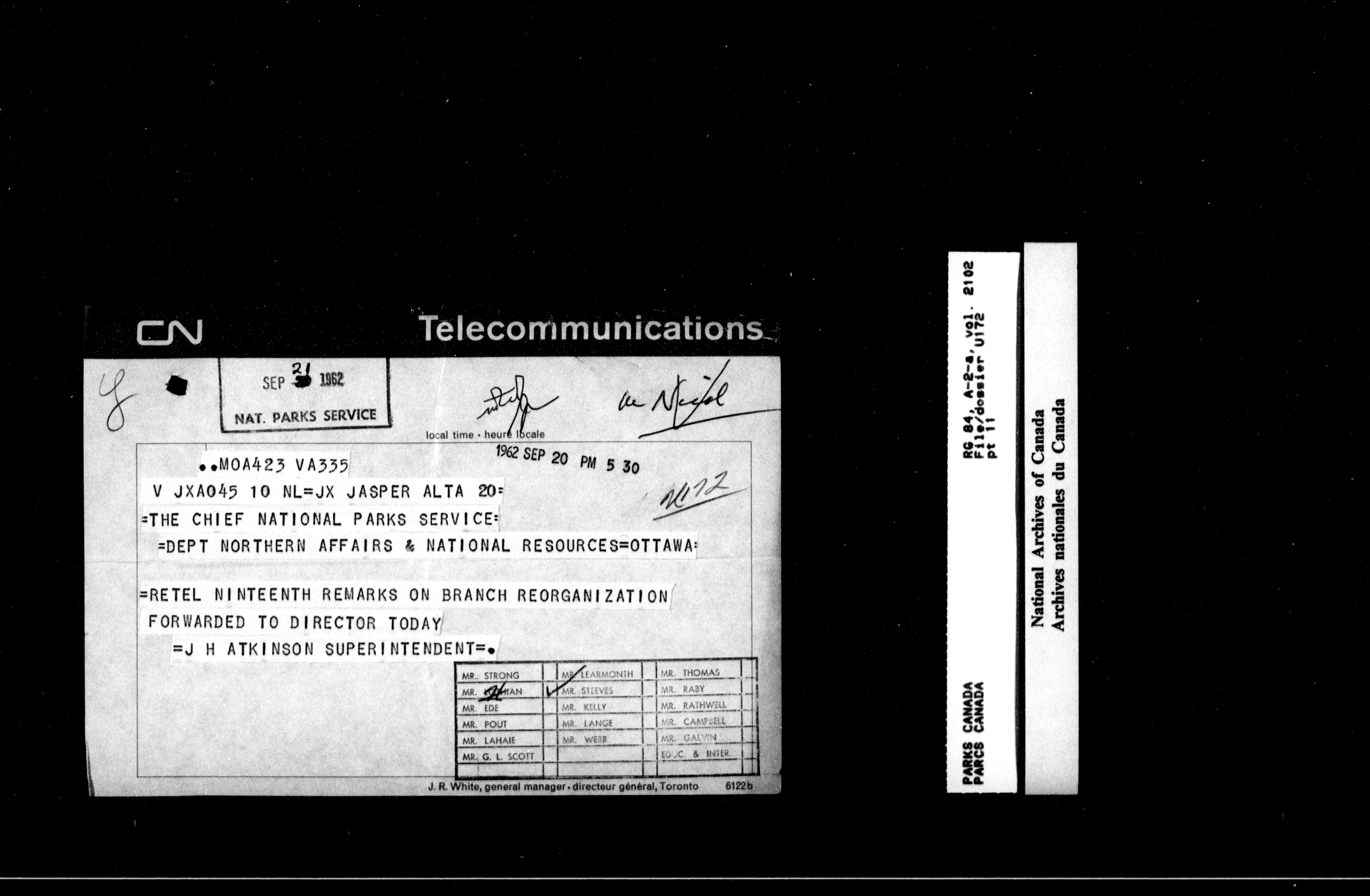 Department of Canadian Heritage, Canadian Parks Service : Park/subject classification system - 16060