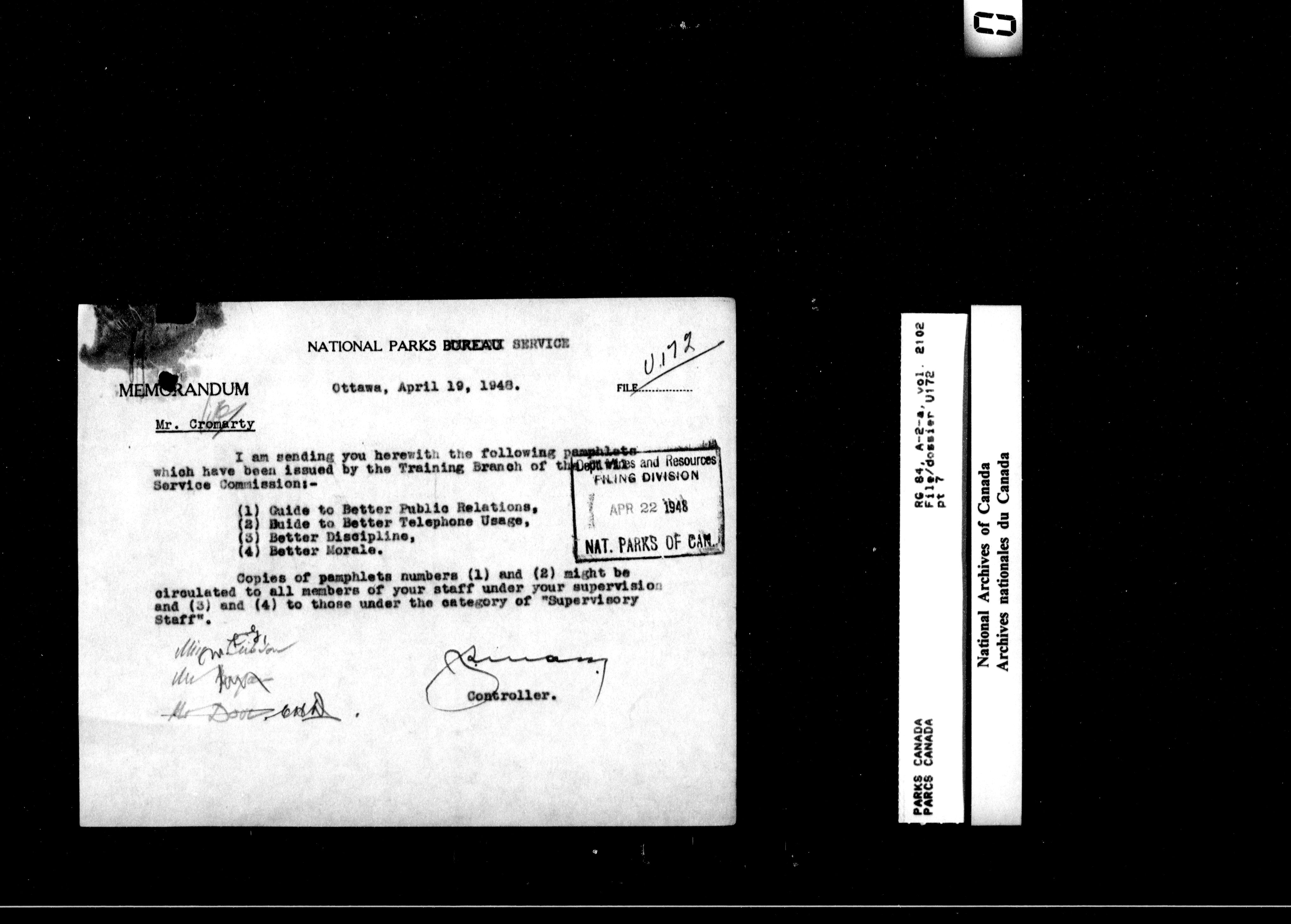 Department of Canadian Heritage, Canadian Parks Service : Park/subject classification system - 16060