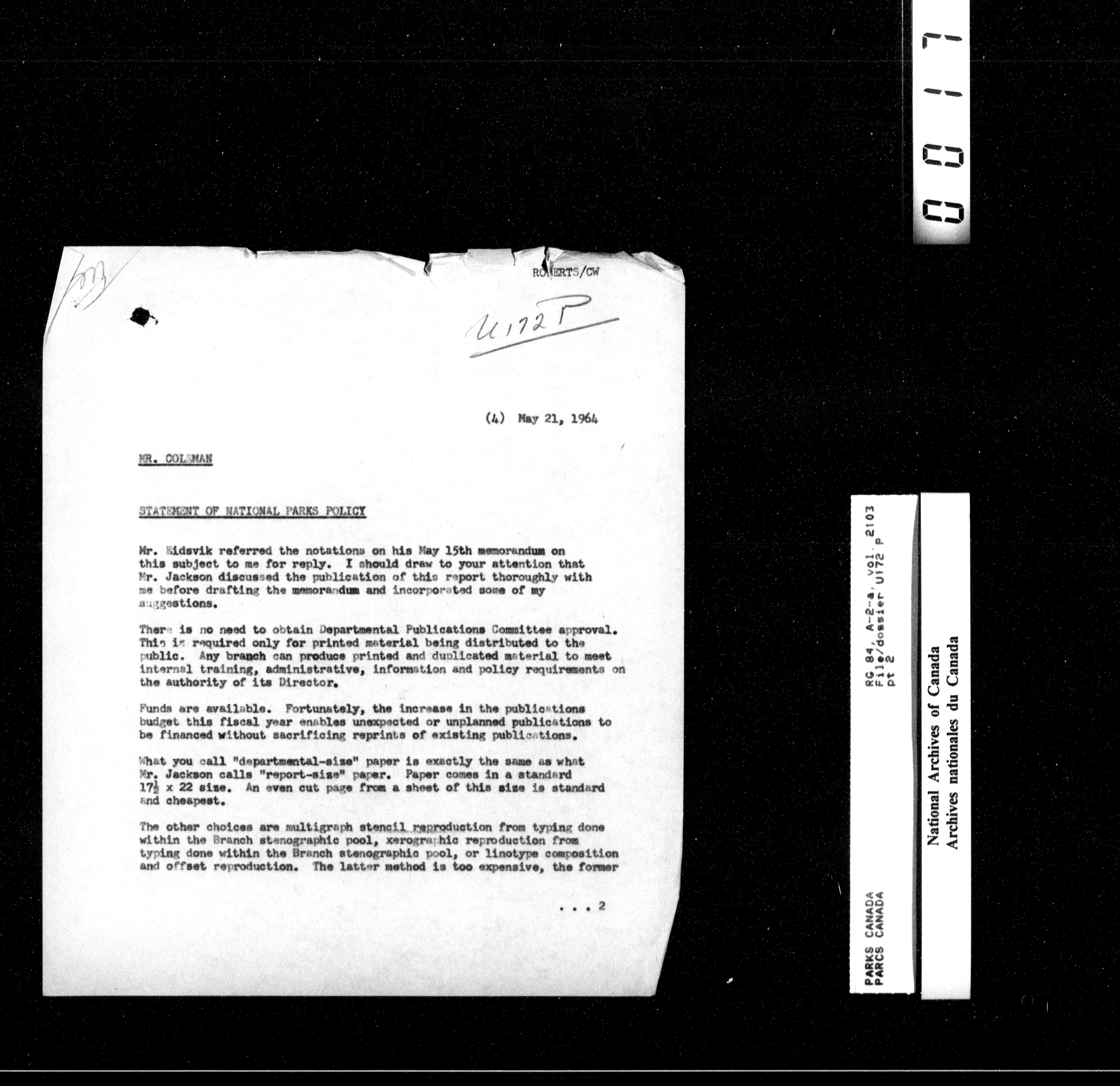 Department of Canadian Heritage, Canadian Parks Service : Park/subject classification system - 16061