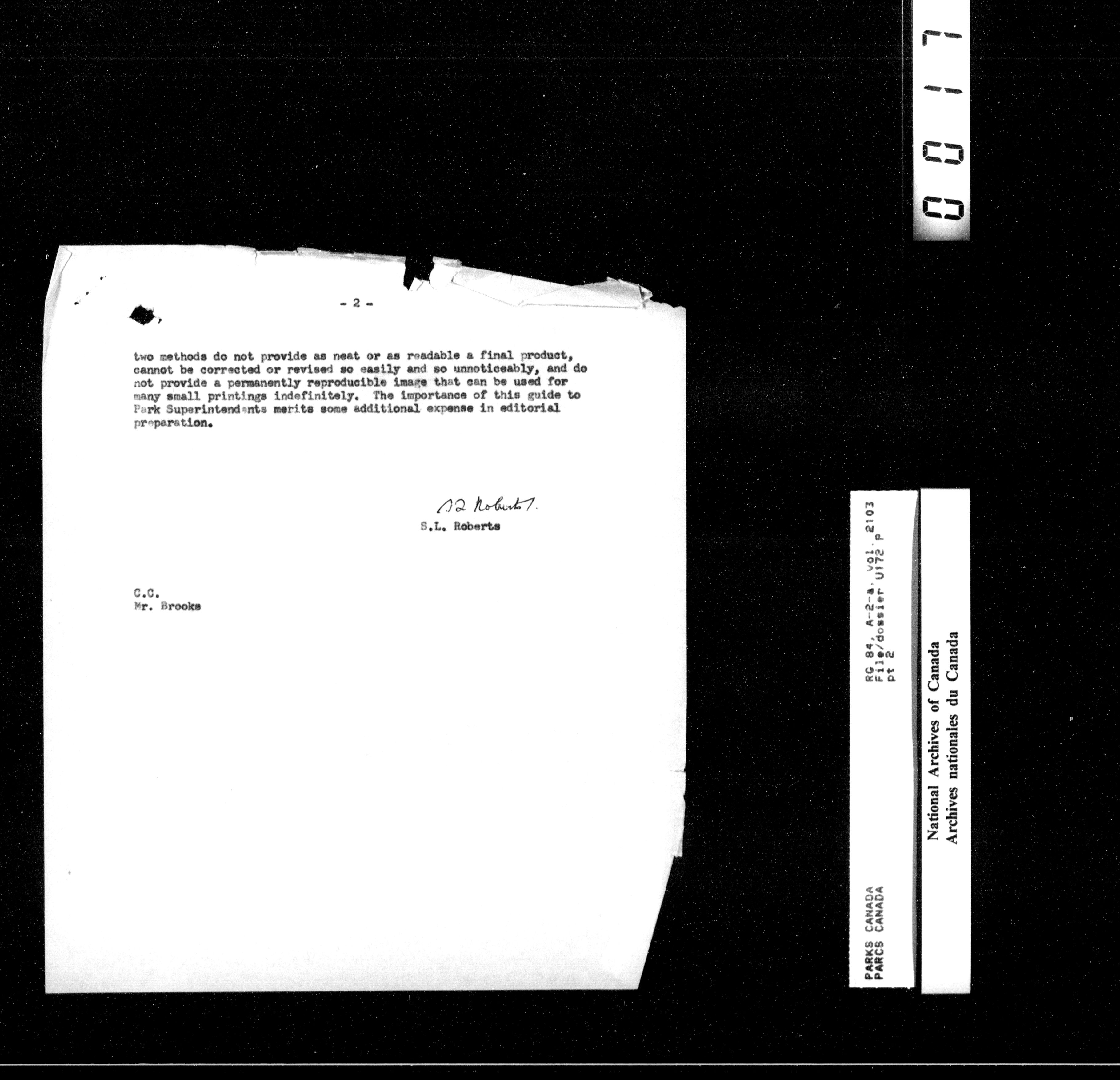 Department of Canadian Heritage, Canadian Parks Service : Park/subject classification system - 16061