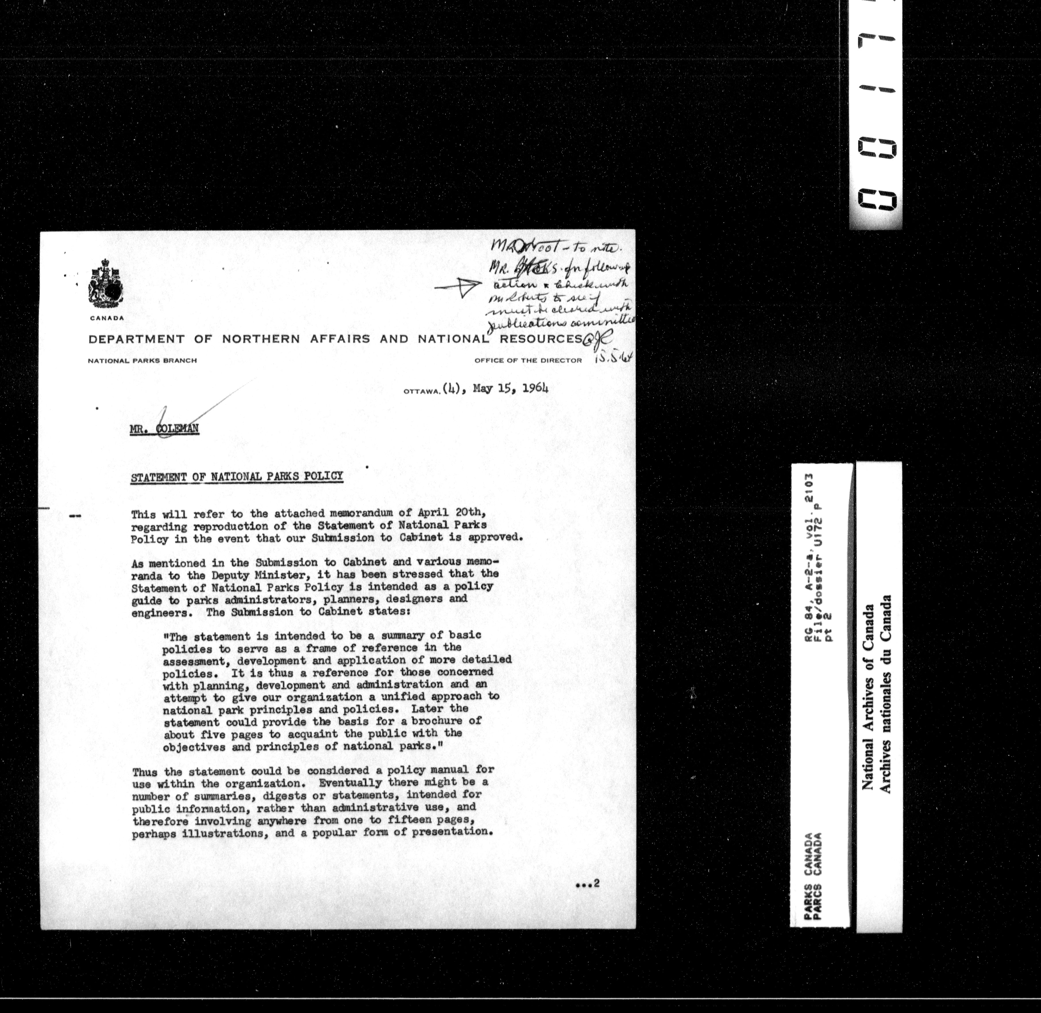 Department of Canadian Heritage, Canadian Parks Service : Park/subject classification system - 16061