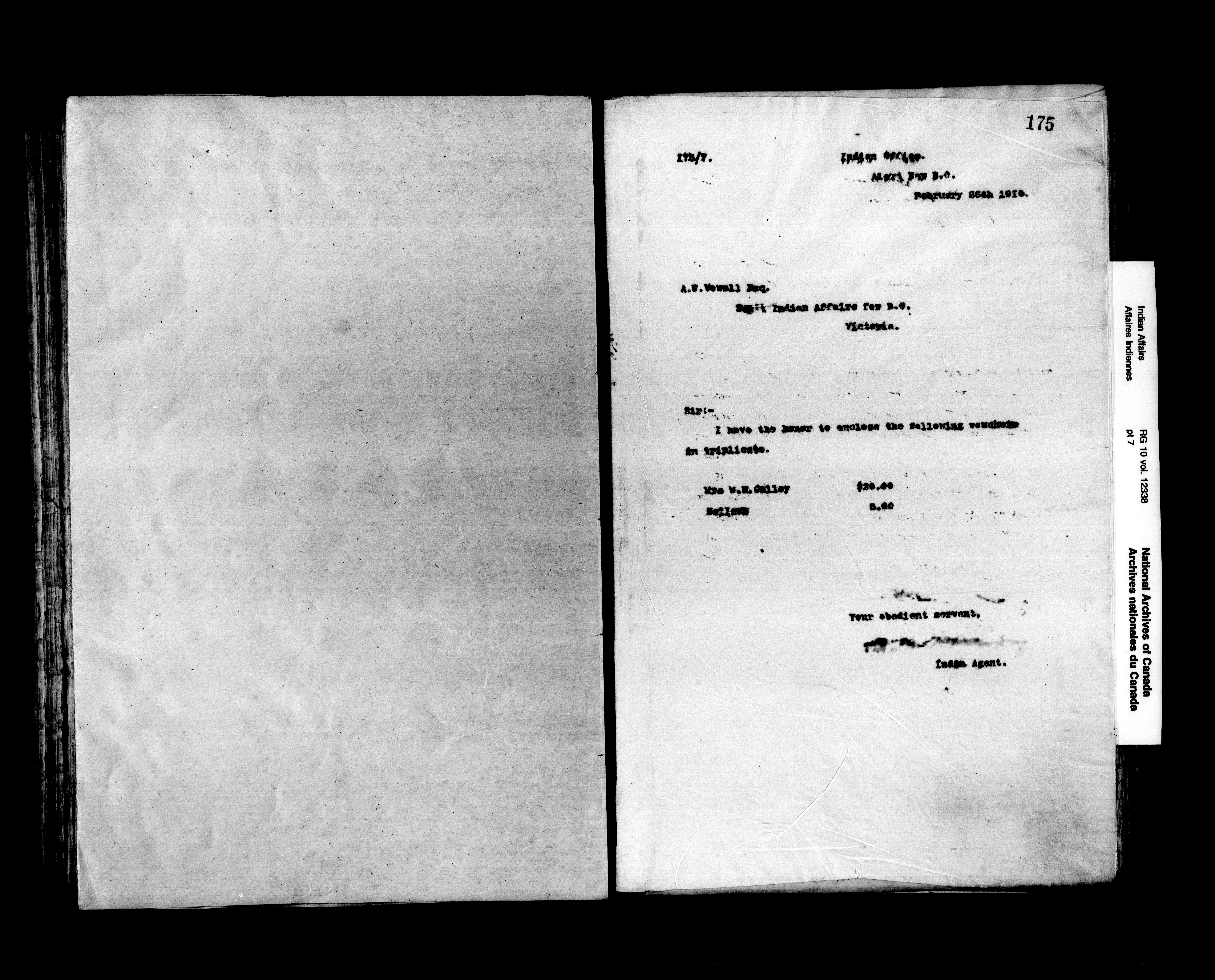 Letters written by the agent at Alert Bay (Kwawkewlth) Agency between 1908 and 1913 and between 1914 and 1920. - 16072