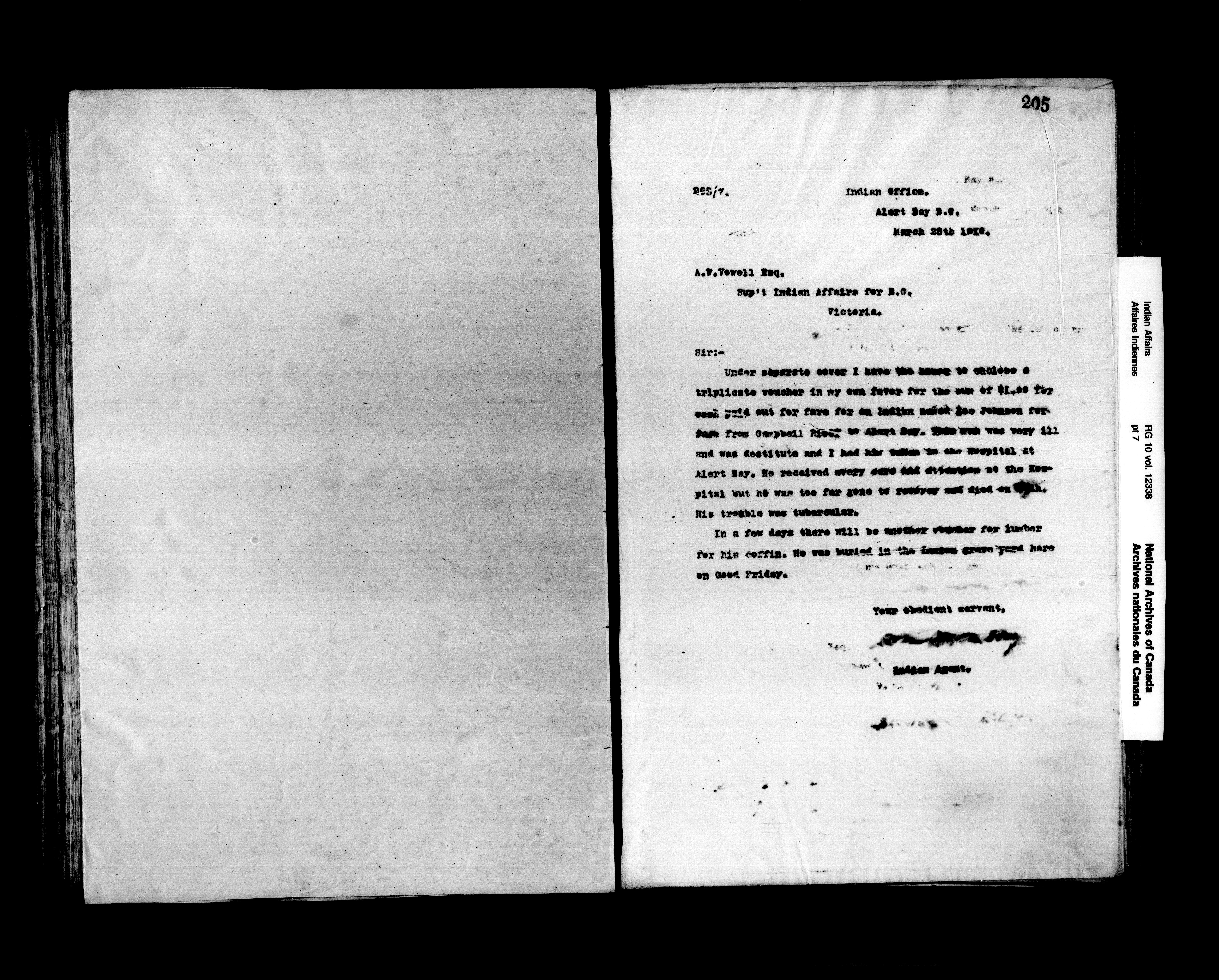 Letters written by the agent at Alert Bay (Kwawkewlth) Agency between 1908 and 1913 and between 1914 and 1920. - 16072