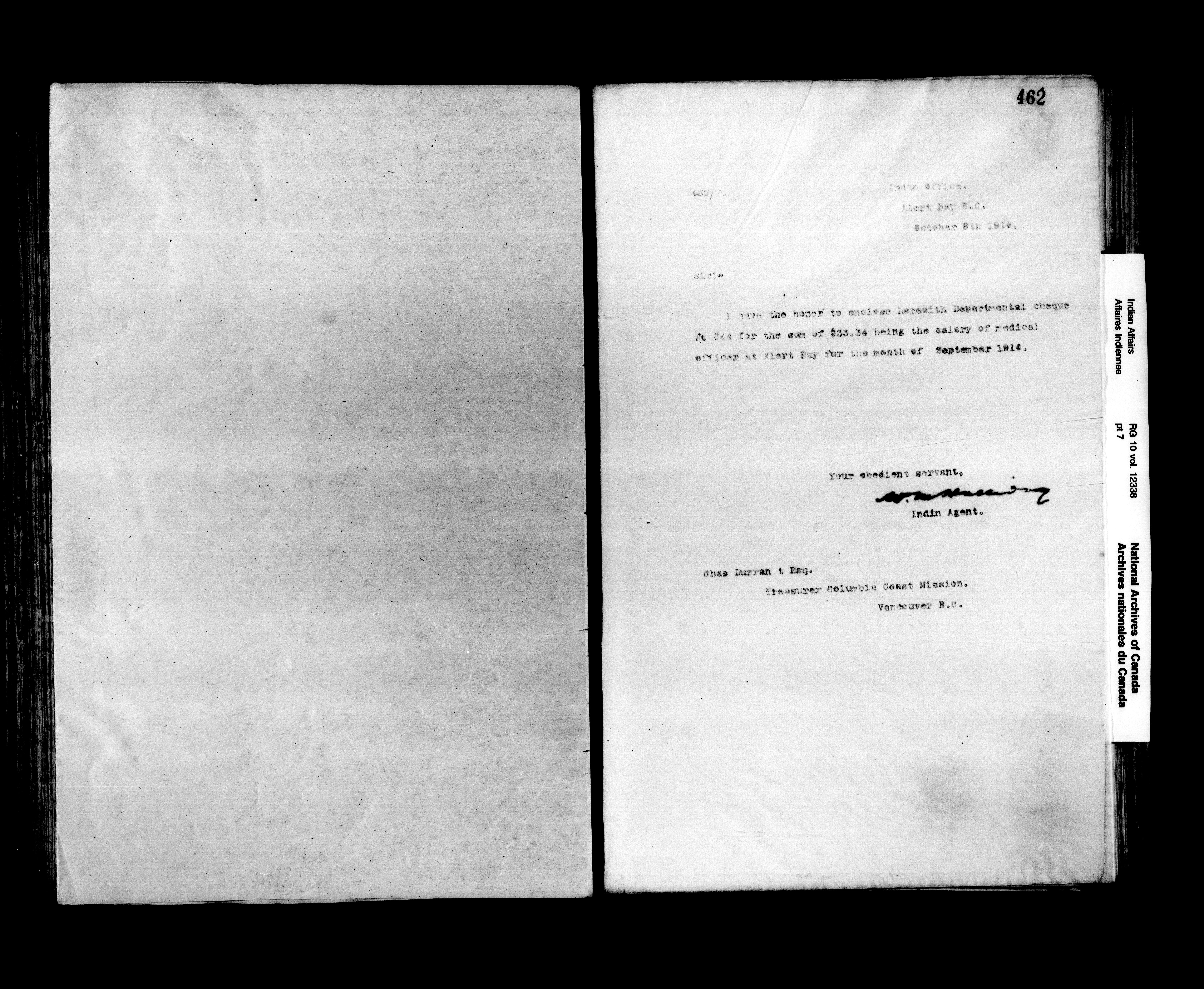 Letters written by the agent at Alert Bay (Kwawkewlth) Agency between 1908 and 1913 and between 1914 and 1920. - 16072