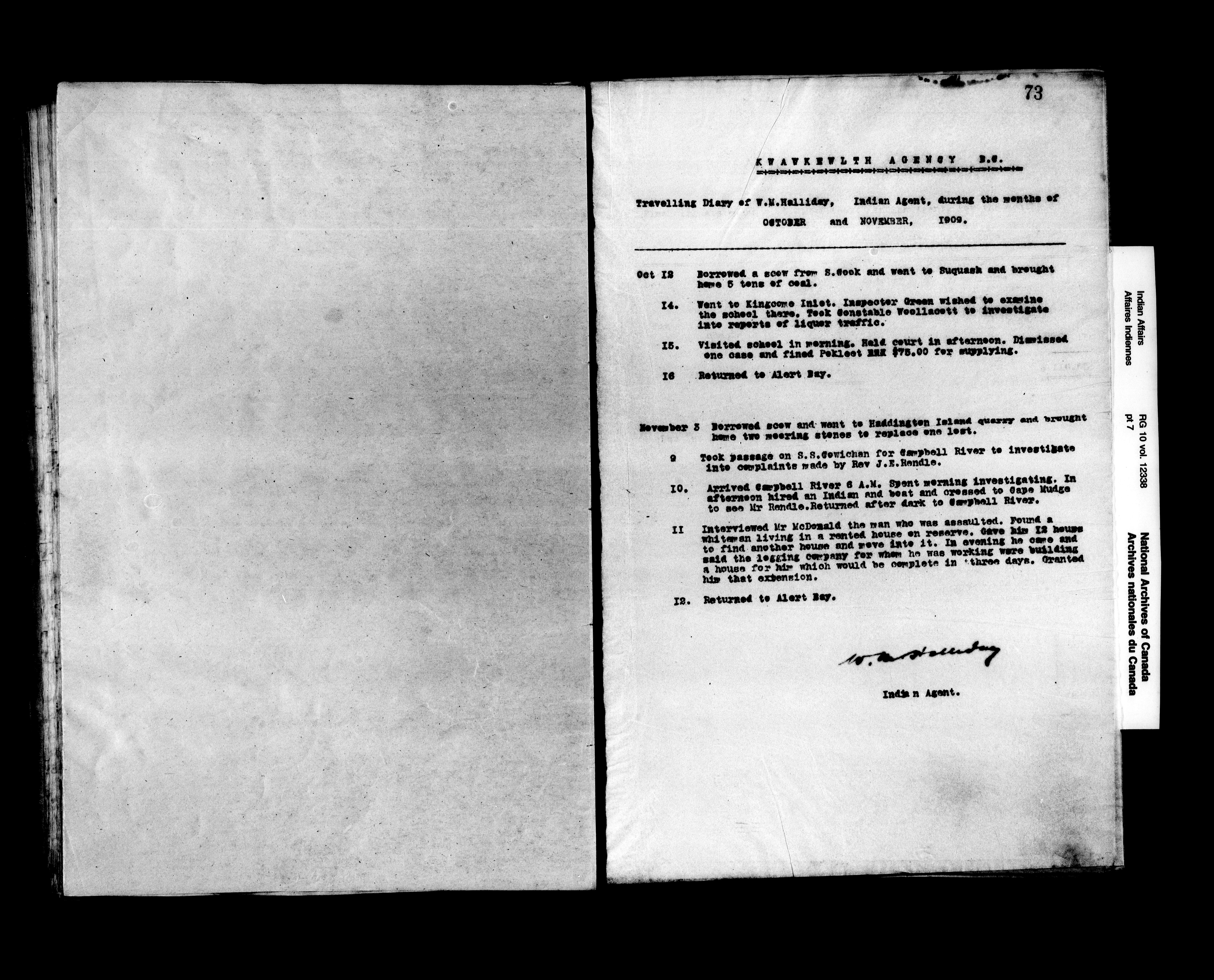 Letters written by the agent at Alert Bay (Kwawkewlth) Agency between 1908 and 1913 and between 1914 and 1920. - 16072