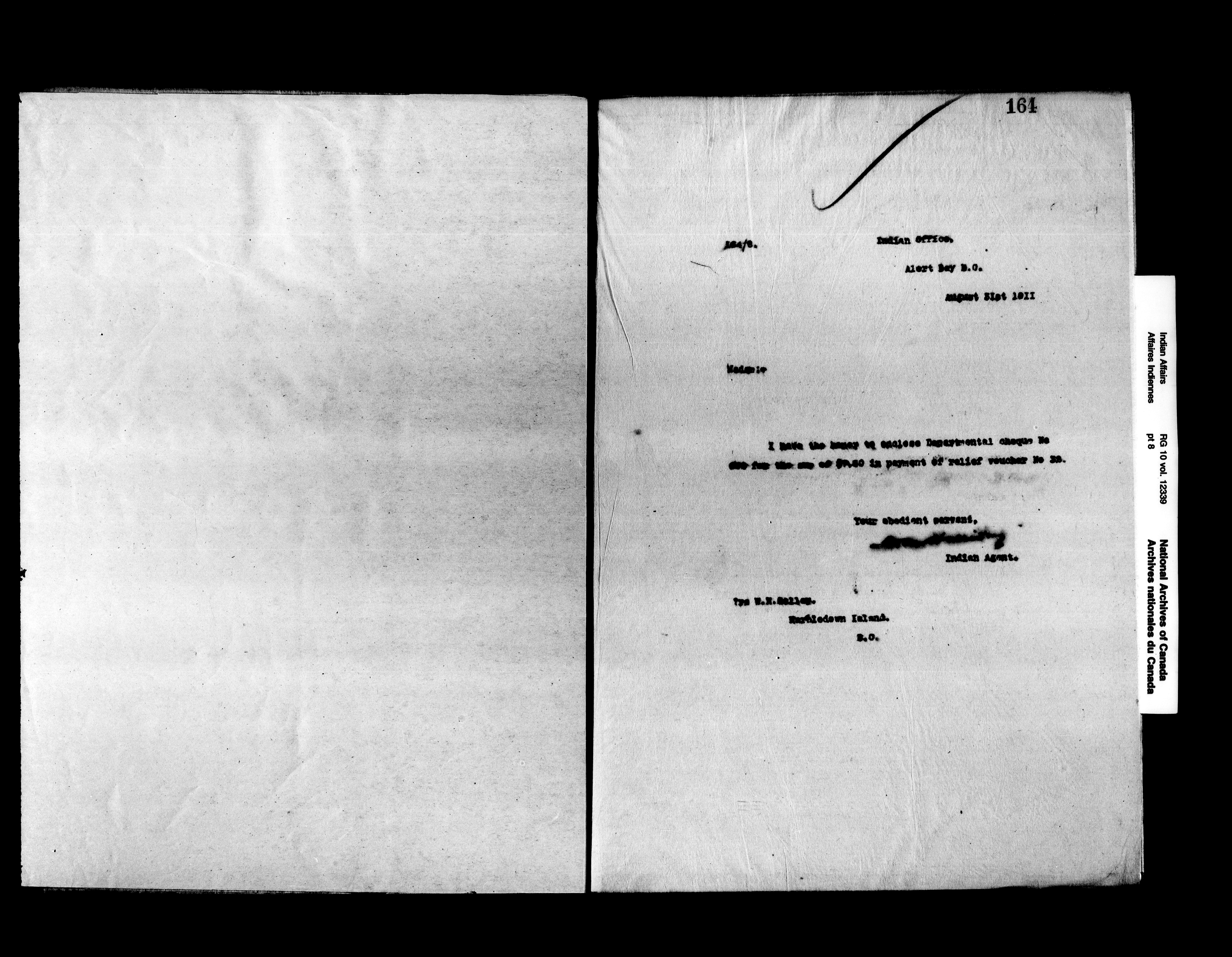 Letters written by the agent at Alert Bay (Kwawkewlth) Agency between 1908 and 1913 and between 1914 and 1920. - 16073