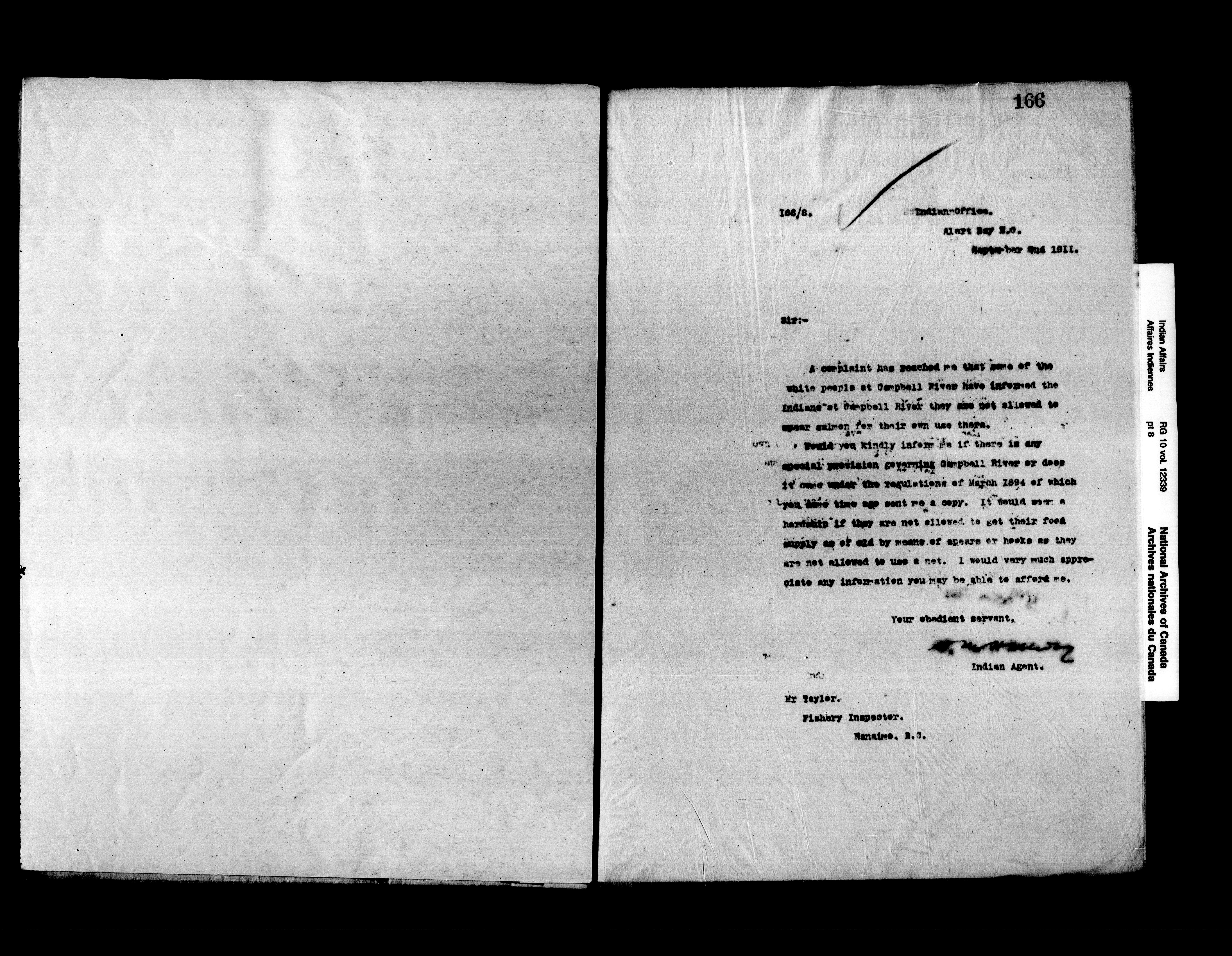 Letters written by the agent at Alert Bay (Kwawkewlth) Agency between 1908 and 1913 and between 1914 and 1920. - 16073