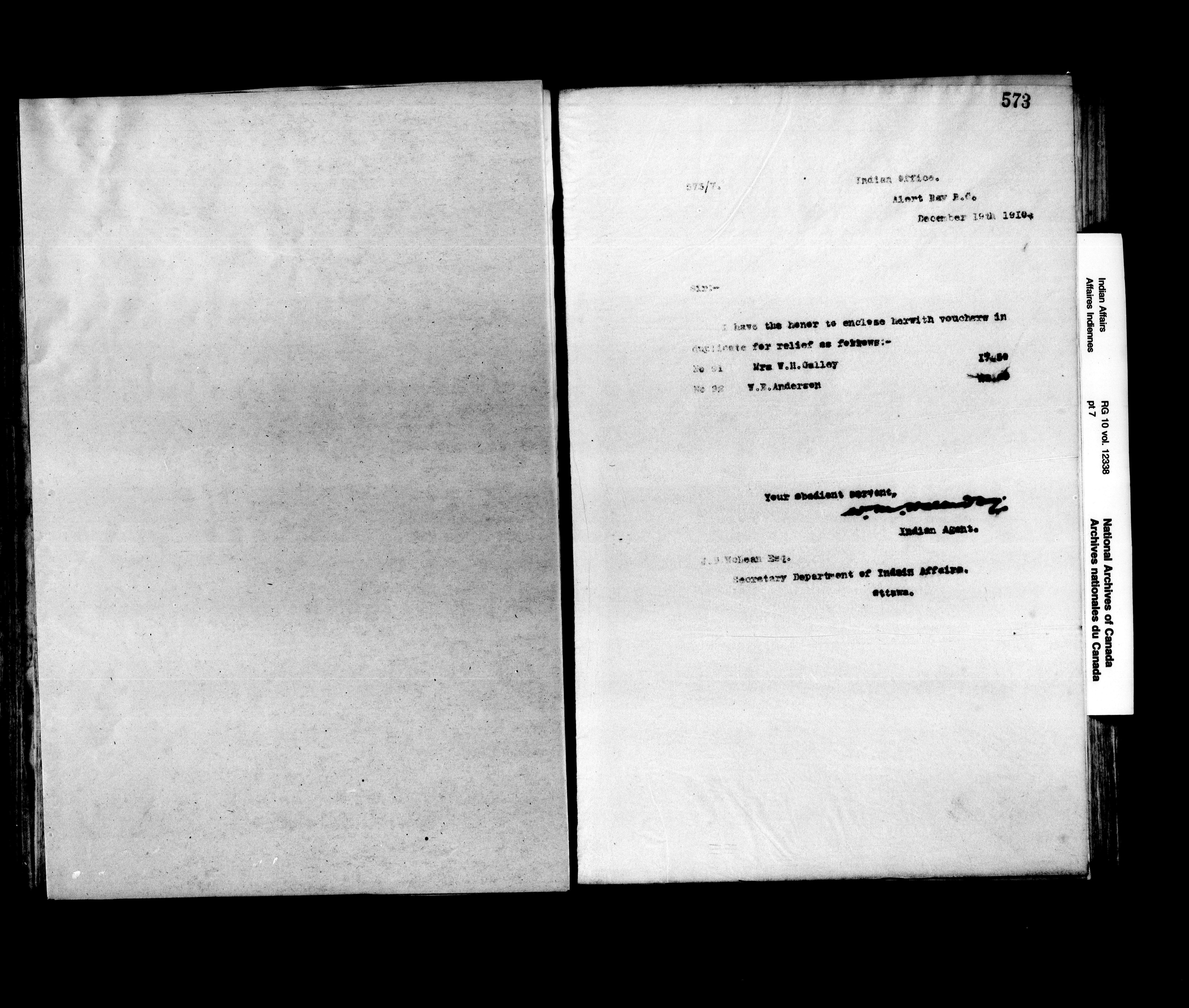 Letters written by the agent at Alert Bay (Kwawkewlth) Agency between 1908 and 1913 and between 1914 and 1920. - 16073