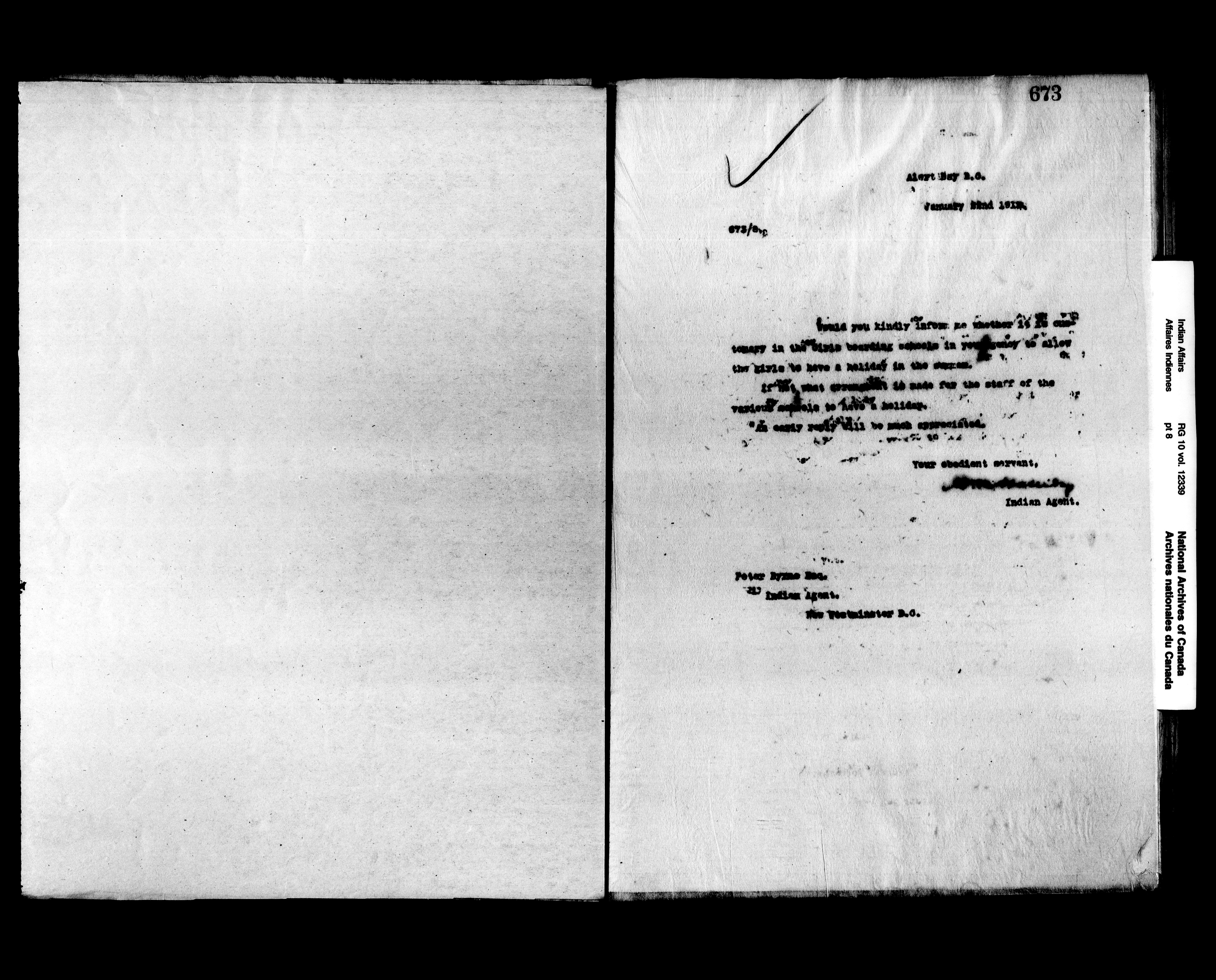 Letters written by the agent at Alert Bay (Kwawkewlth) Agency between 1908 and 1913 and between 1914 and 1920. - 16074