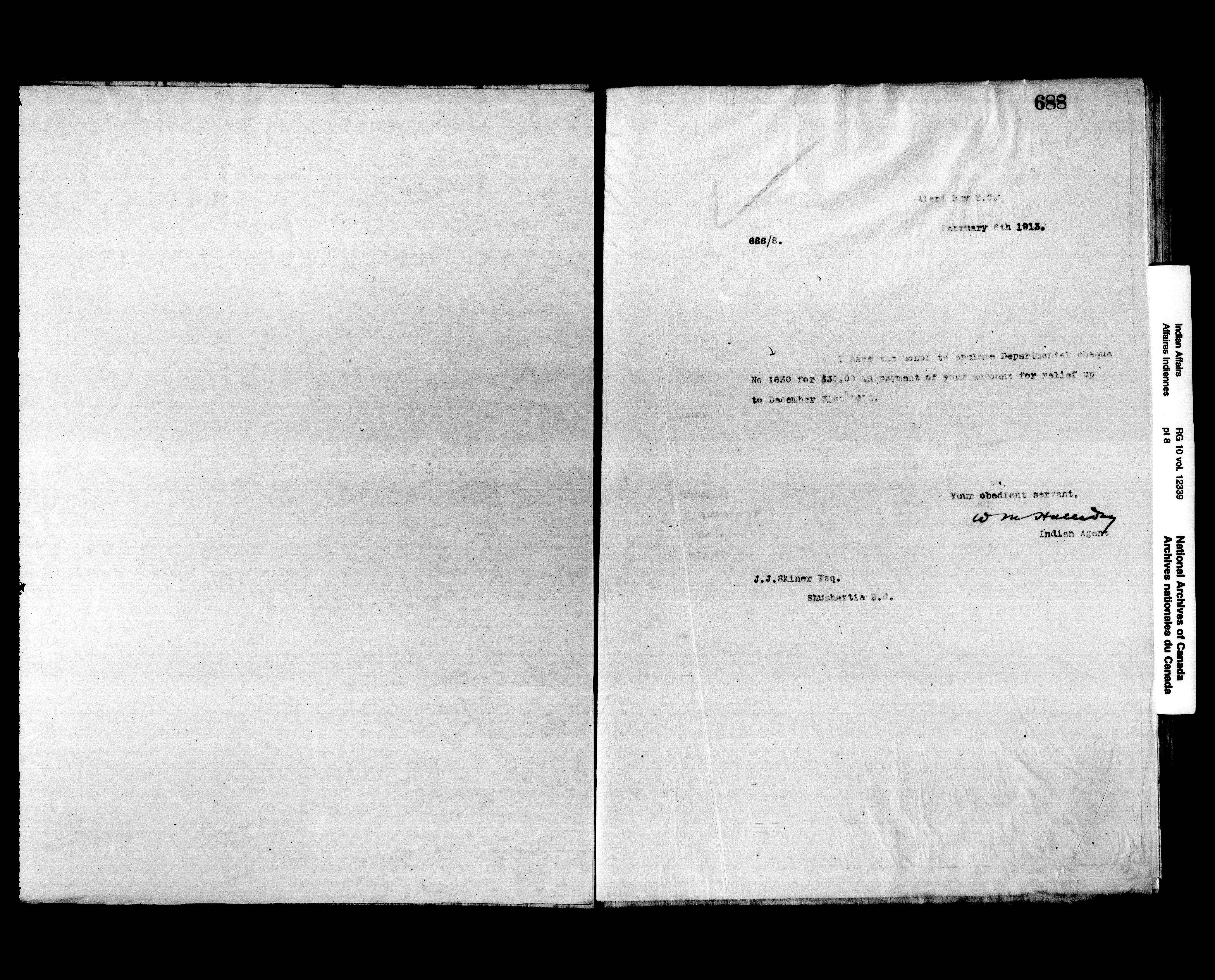 Letters written by the agent at Alert Bay (Kwawkewlth) Agency between 1908 and 1913 and between 1914 and 1920. - 16074