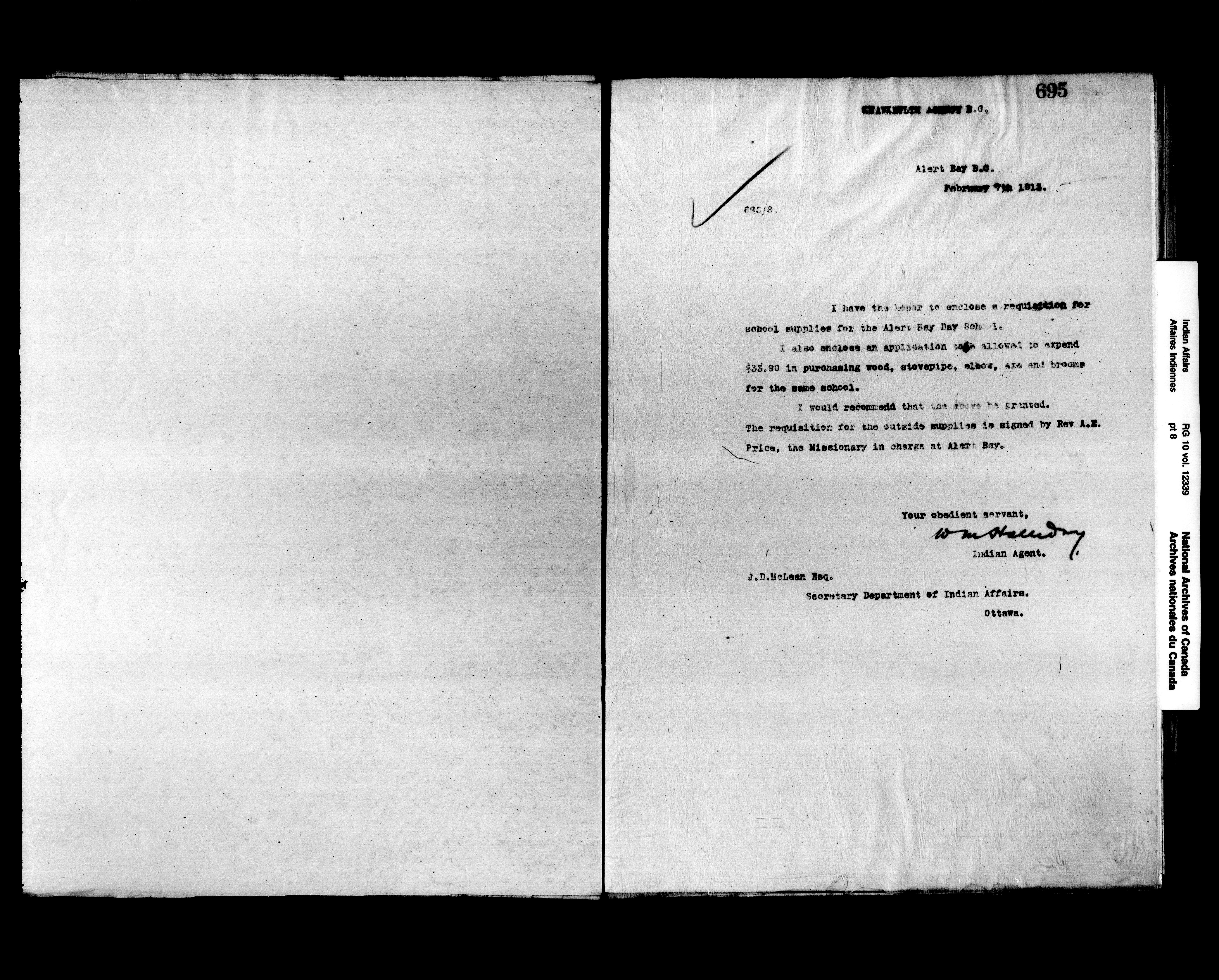 Letters written by the agent at Alert Bay (Kwawkewlth) Agency between 1908 and 1913 and between 1914 and 1920. - 16074