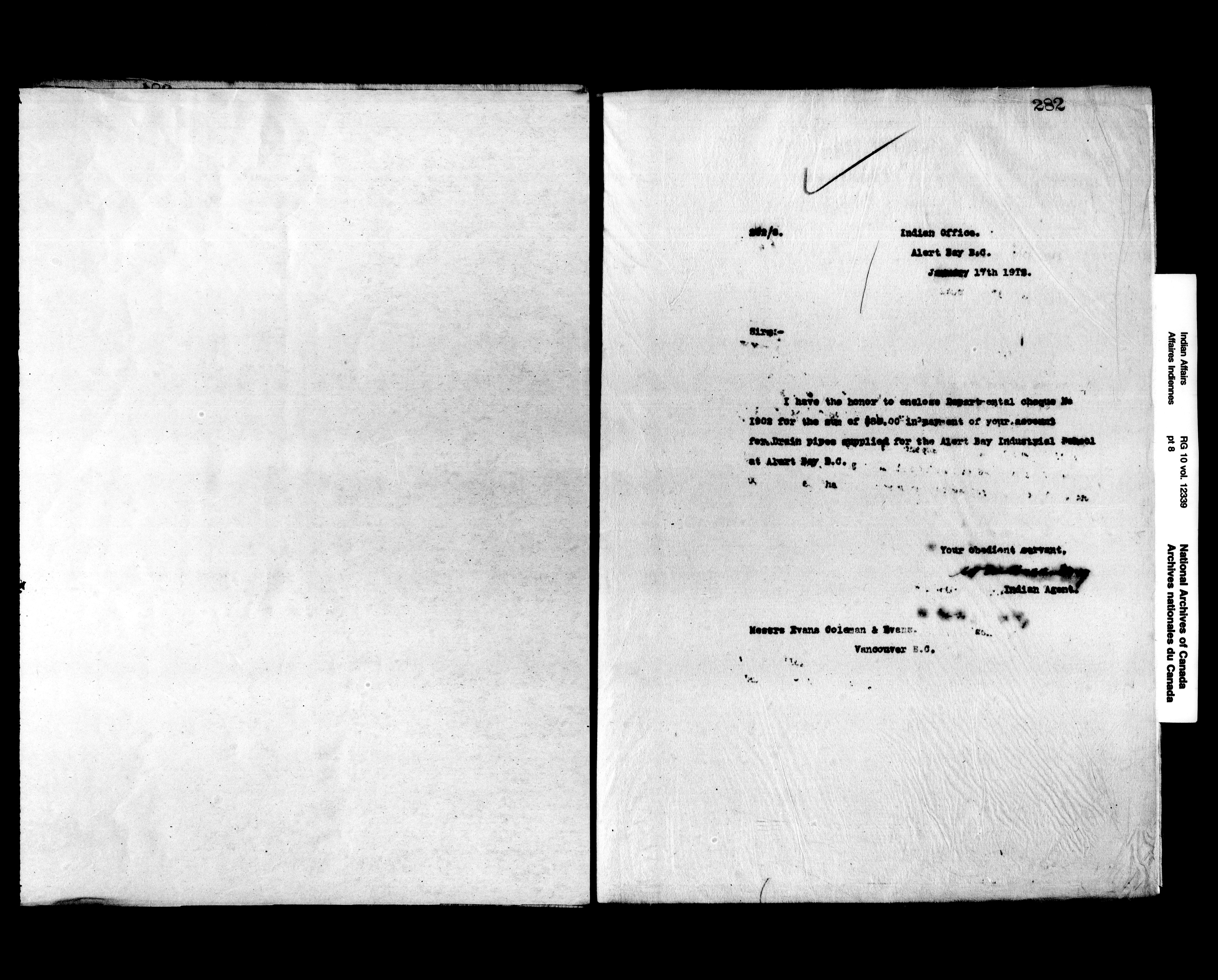 Letters written by the agent at Alert Bay (Kwawkewlth) Agency between 1908 and 1913 and between 1914 and 1920. - 16074