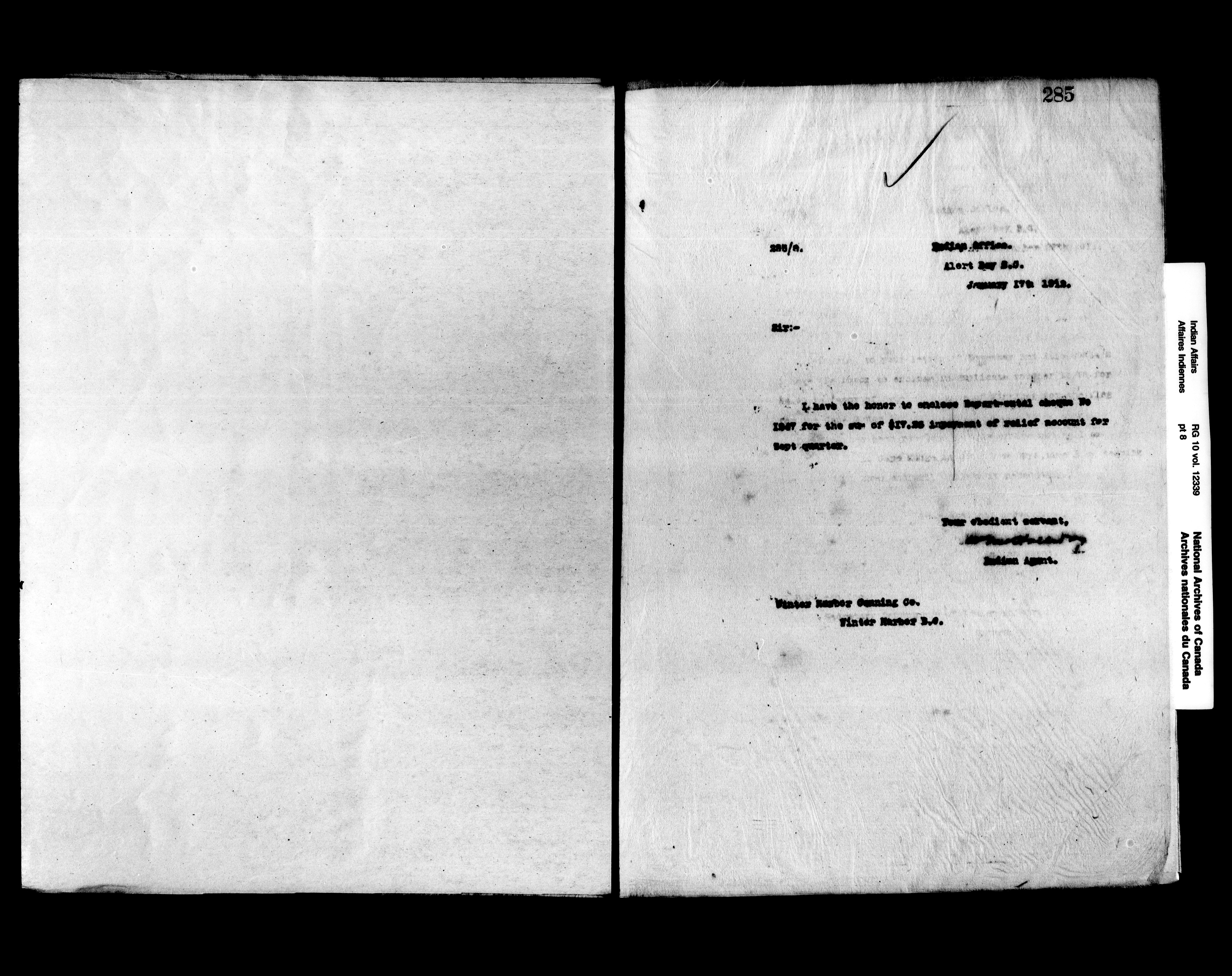 Letters written by the agent at Alert Bay (Kwawkewlth) Agency between 1908 and 1913 and between 1914 and 1920. - 16074