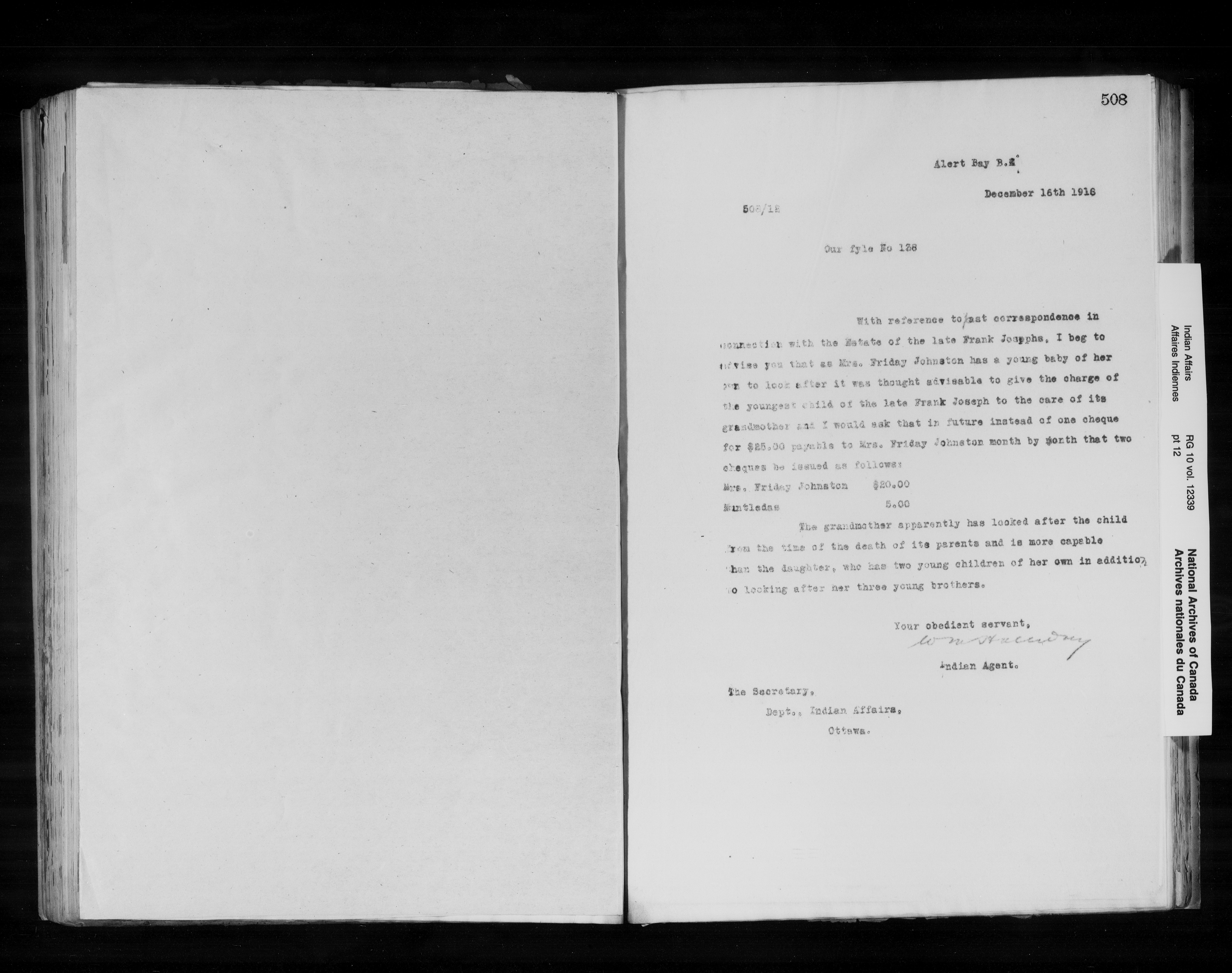 Letters written by the agent at Alert Bay (Kwawkewlth) Agency between 1908 and 1913 and between 1914 and 1920. - 16078