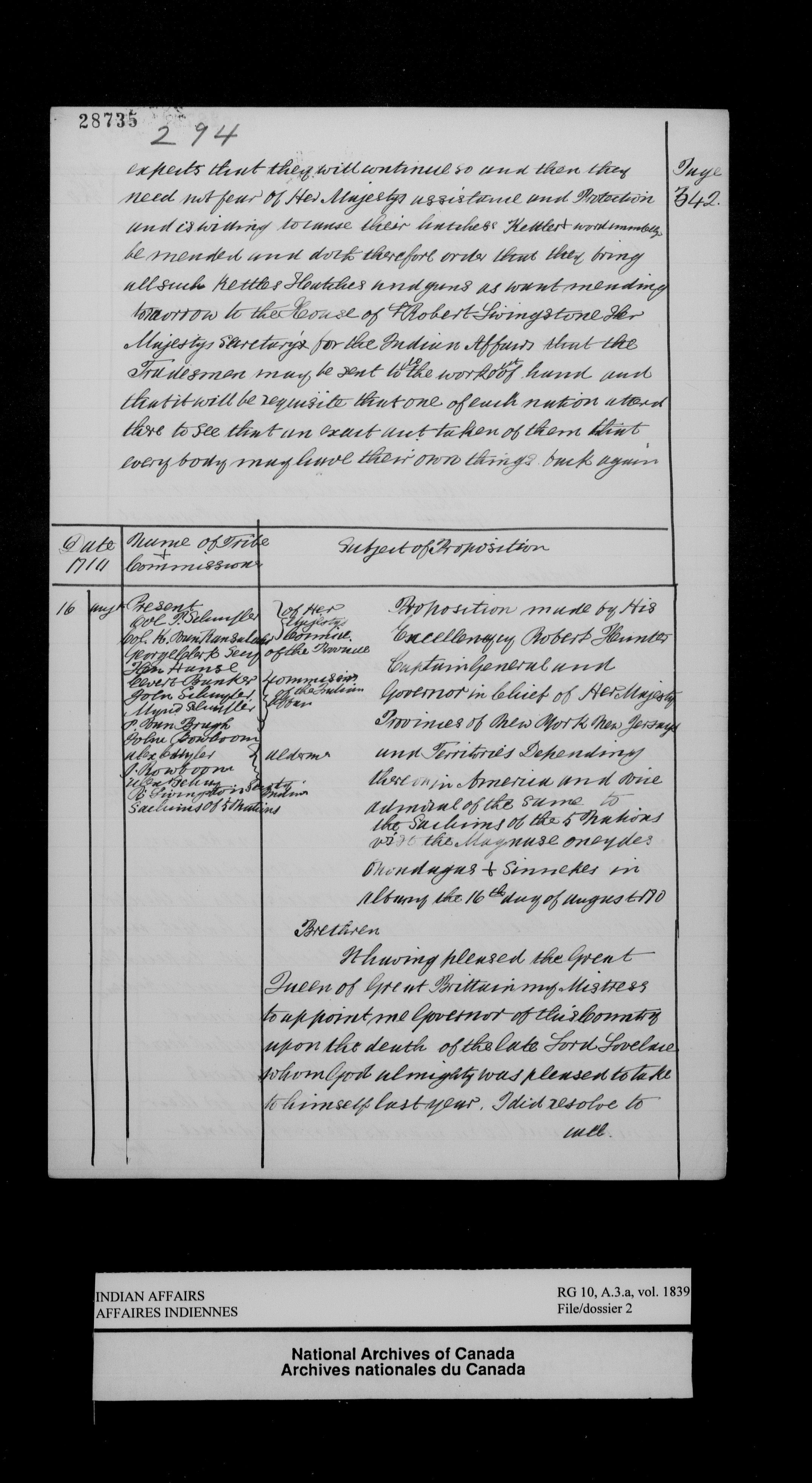Commissioners of Indian Affairs, Albany, New York (1677-1748) - 16082