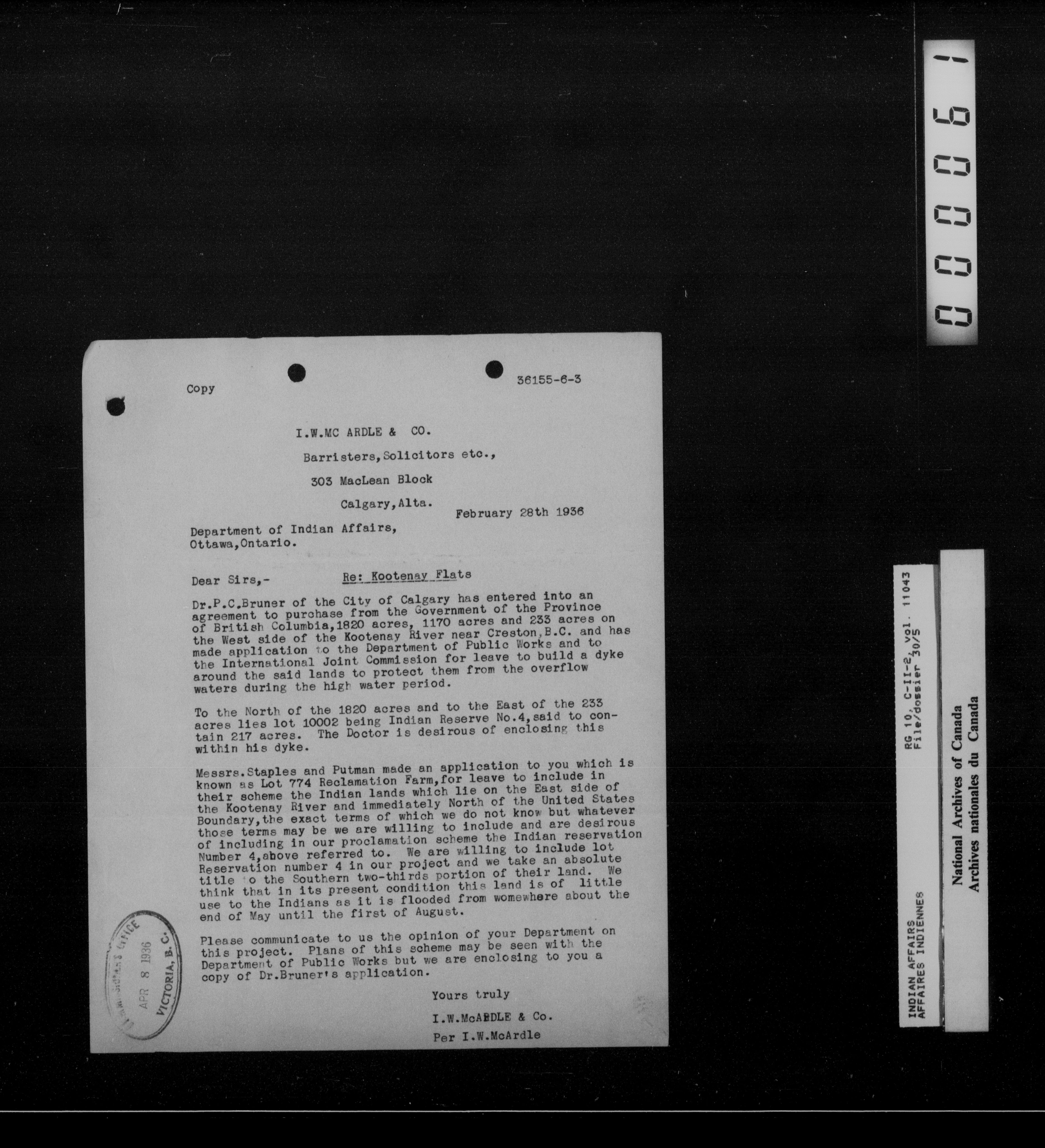 Department of Indian Affairs : Indian Commissioner for British Columbia : T-16086