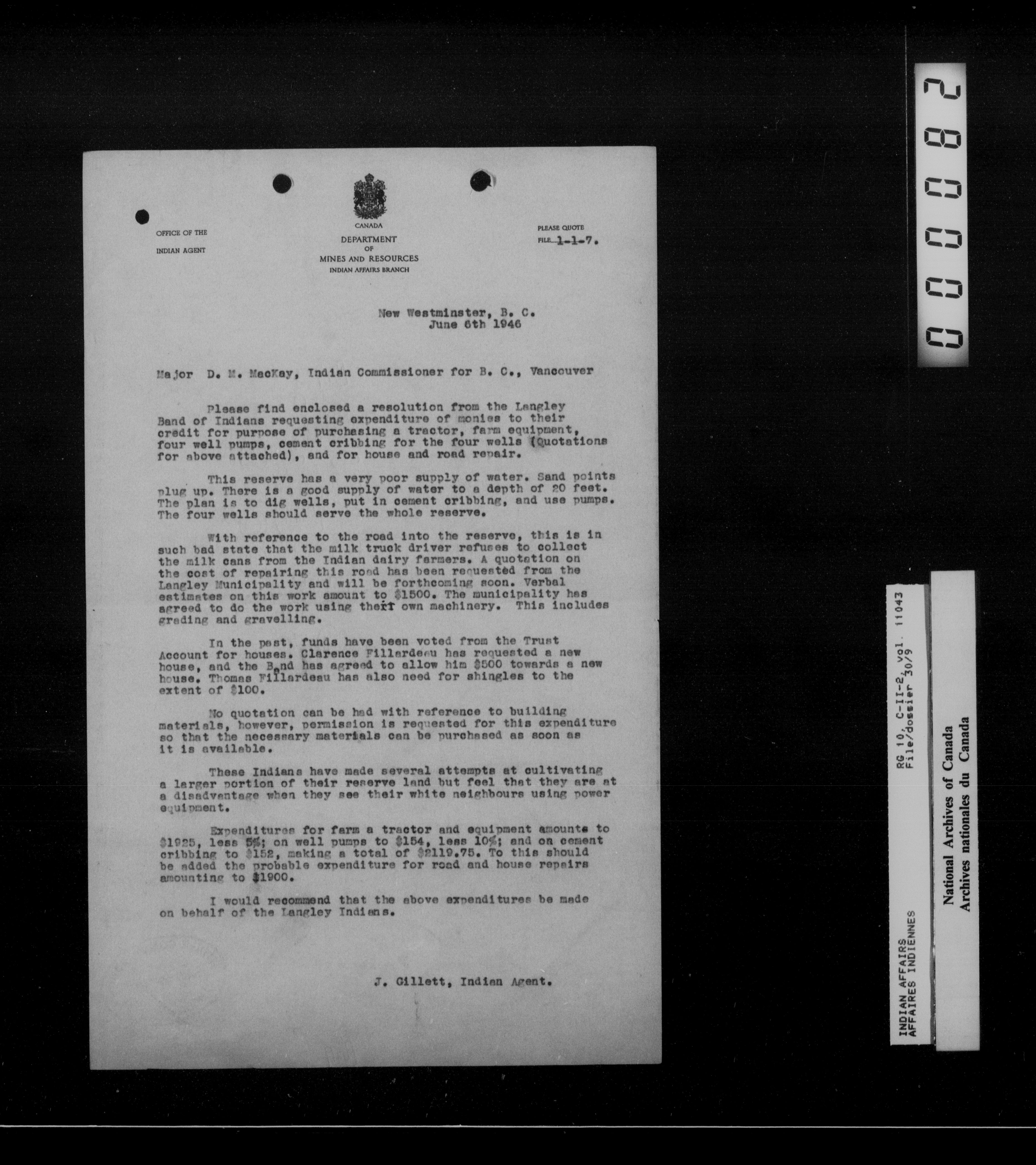 Indian Commissioner for British Columbia (1887-1964) - 16086