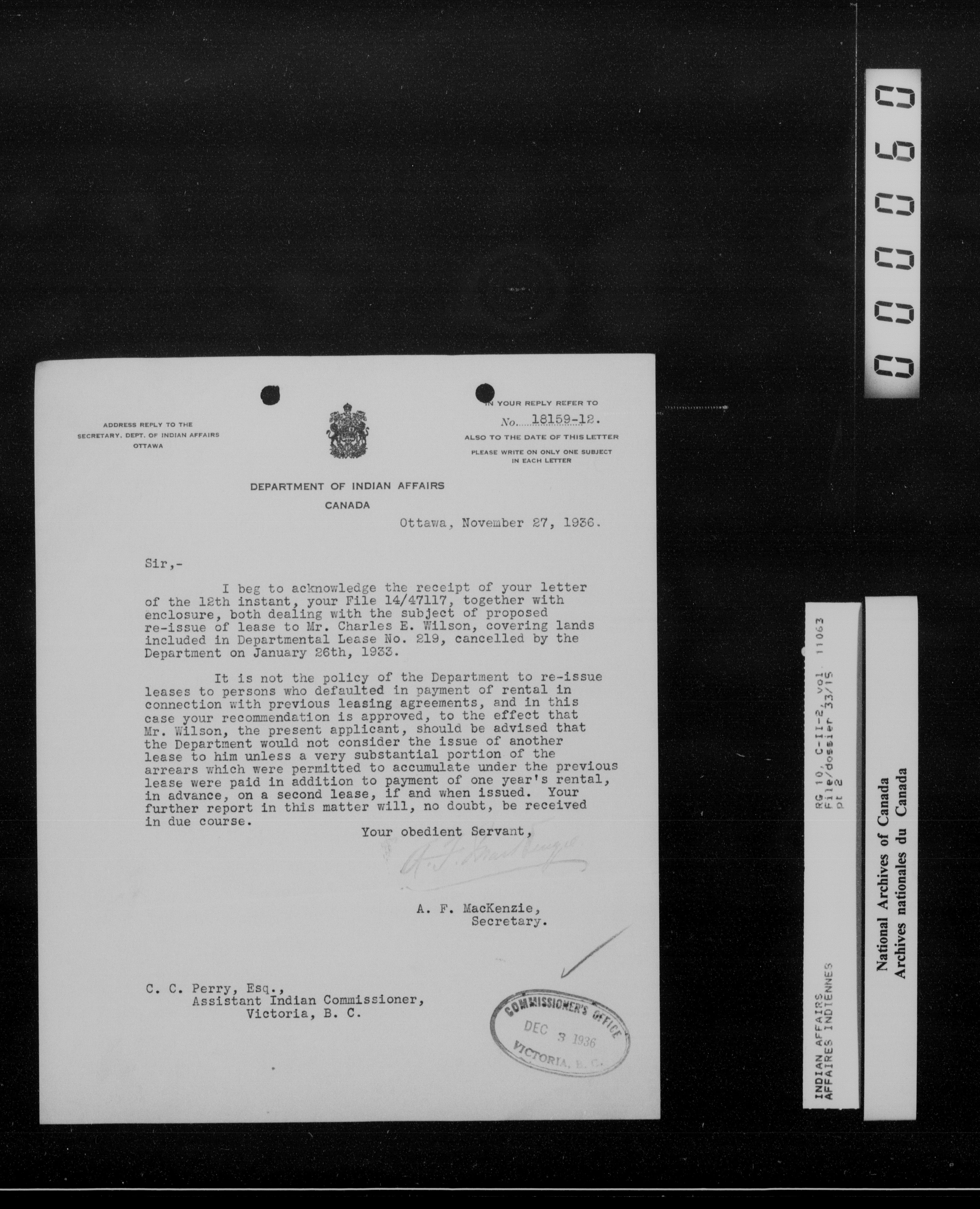 Department of Indian Affairs : Indian Commissioner for British Columbia : T-16094