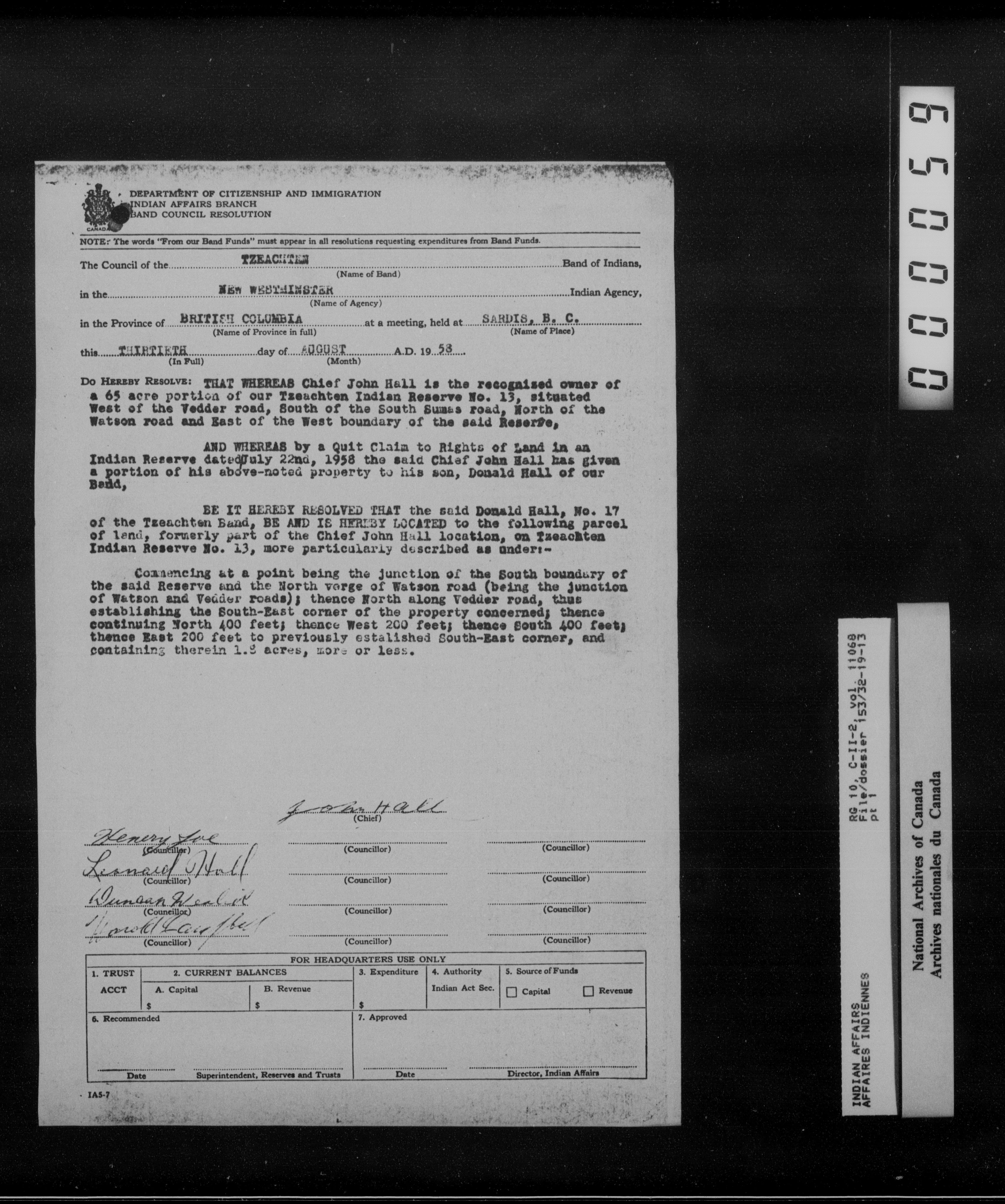 Indian Commissioner for British Columbia (1887-1964) - 16097