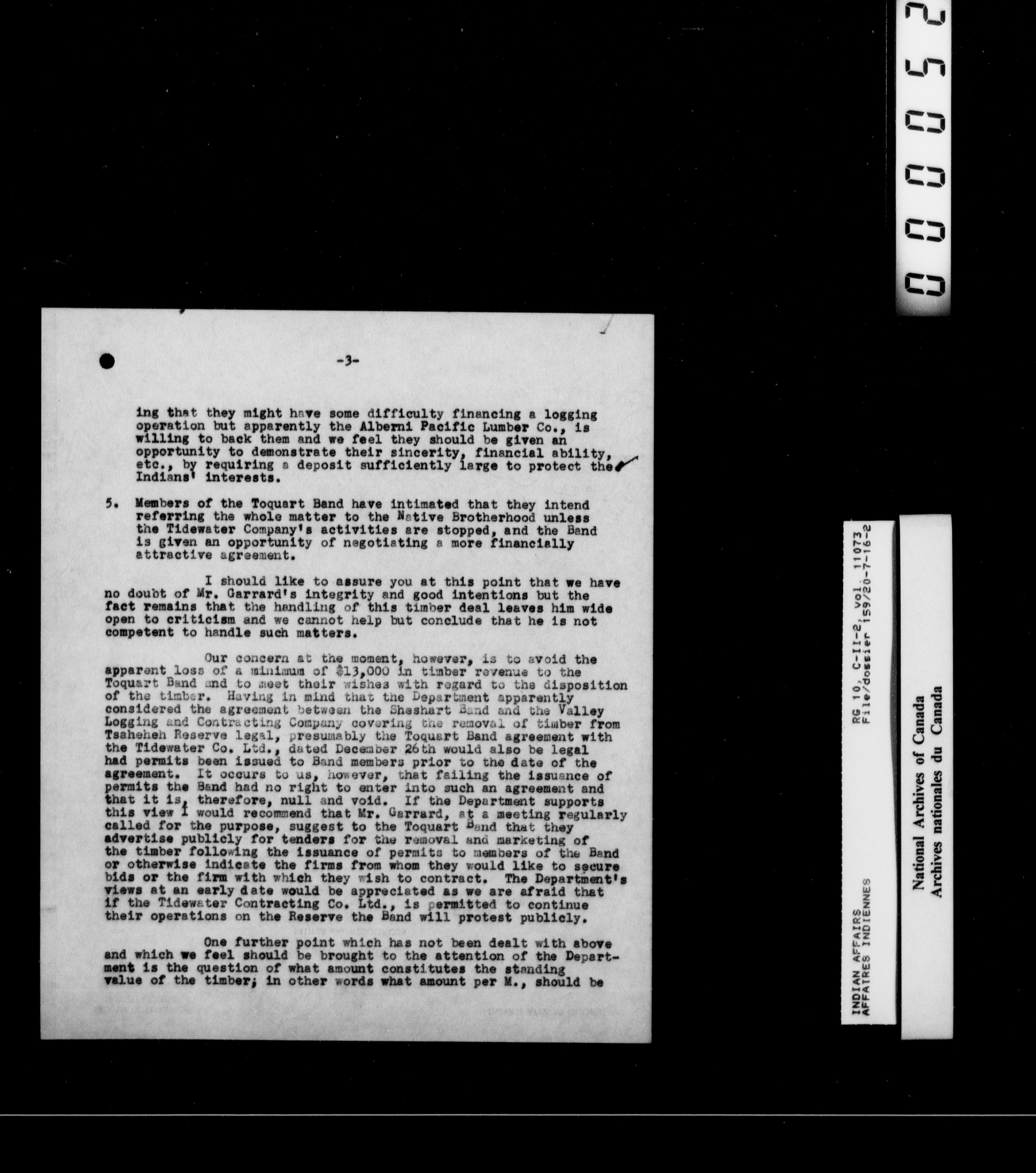 Department of Indian Affairs : Indian Commissioner for British Columbia : T-16101