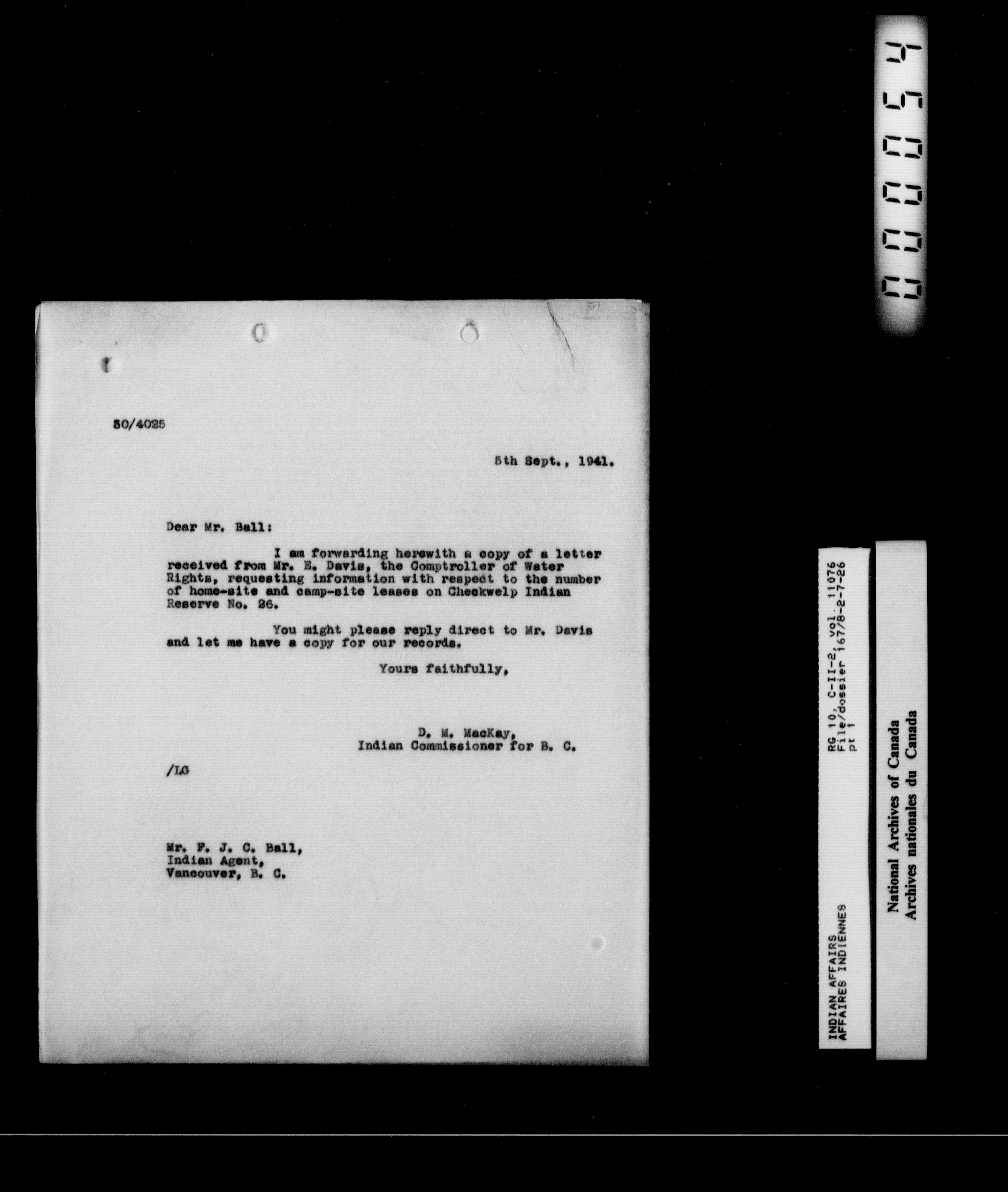 Department of Indian Affairs : Indian Commissioner for British Columbia : T-16103